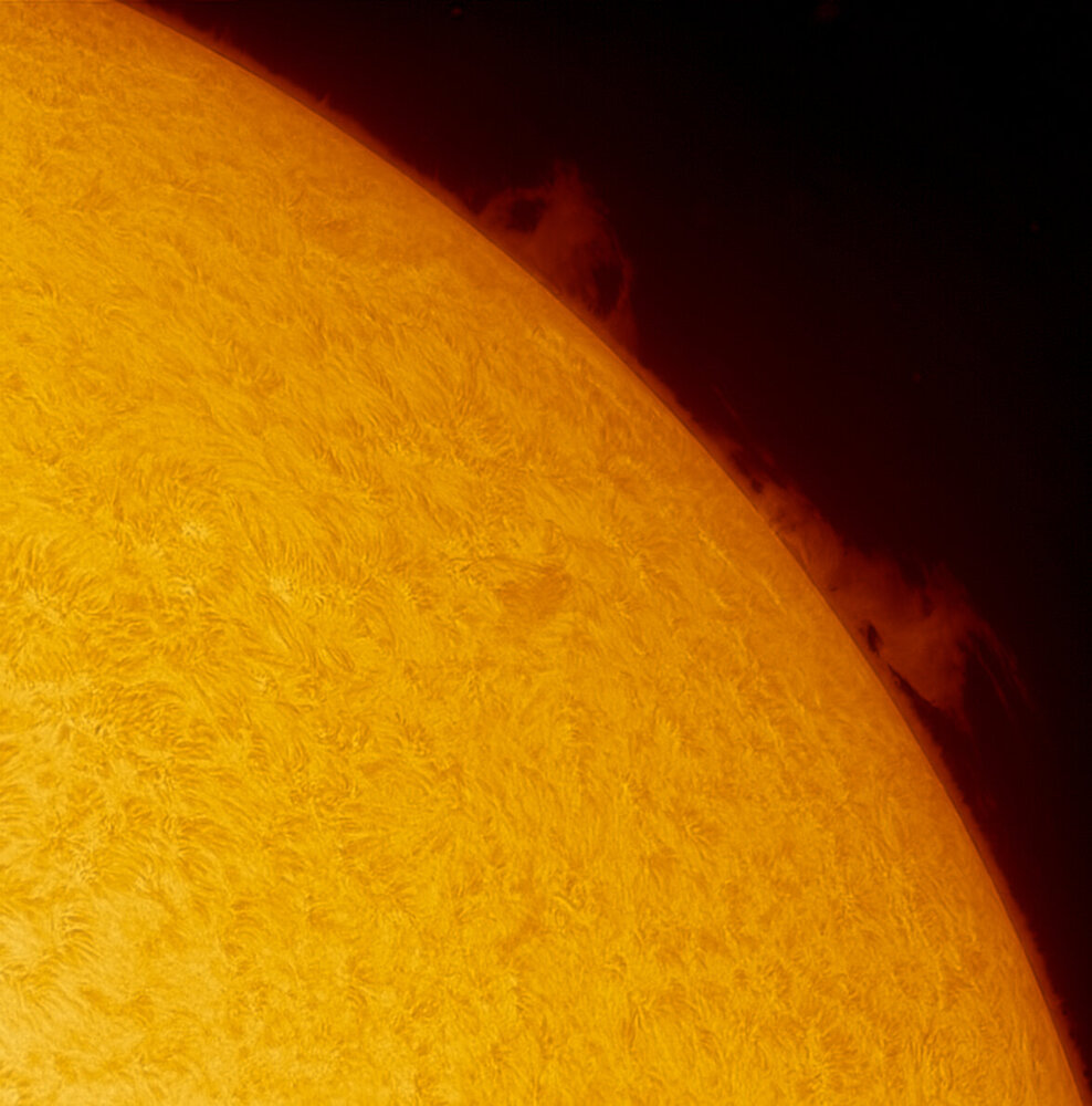 j'ajoute cette animation de la grosse protubérance visible ce matin ( durée: 1h13min , condition médiocre : vent + turbulence ). -