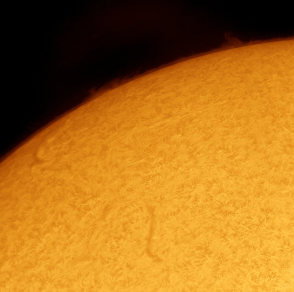 Aujourd'hui il y avait un beau ciel mais avec un vent glaçant du nord-est. Toutes les tentatives en lumière blanche ressemblaient à des œufs brouillés. Avec le Halpha, je m’en tire mieux : -
