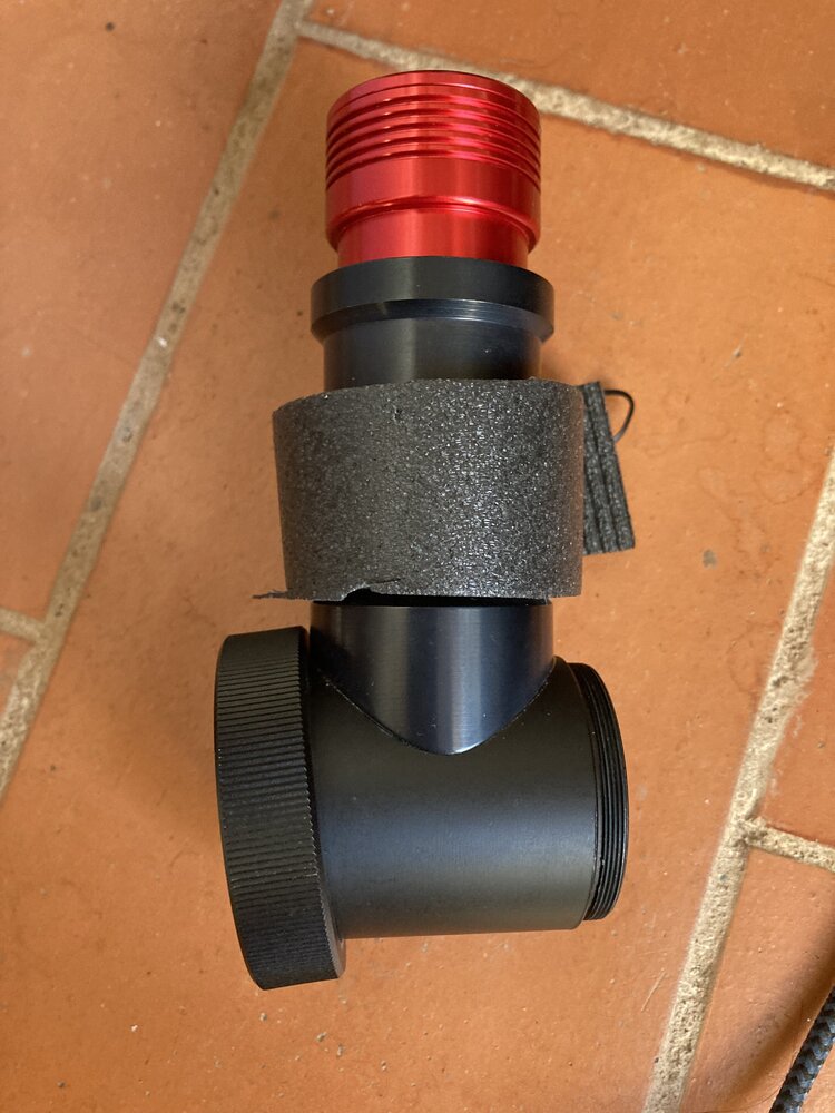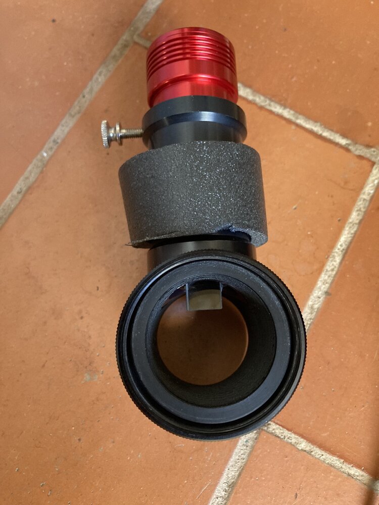 Bonjour à tous! j’ai utilité ce vieux diviseur optique que pour faire du guidage, mais je le trouve assez limité (pas de rotation possible, entre autre). auriez vous une idée de sa marque et référence? Malgré mes recherches, Je ne le trouve nulle part. il était peut être associé à un ancien celestron pour faire du guidage manuel avec un oculaire réticulé. (la mousse c’est pour éviter de réchauffer la caméra, une asi585MC que j’ai refroidie.) qutre question, y aurait il un avantage optique de remplacer ce diviseur par un diviseur récent? je m’en sers sur un schmidt Cassegrain 8 » Meade sur monture ioptron cem40 (ancien tube d’un LX200) je compte par la suite modifier le 0 shift (focuser électrique) du LX200 pour pouvoir le commander avec N.I.N.À. donc le diviseur optique doit aller derrière le focuseur. jusque là il était directement vissé au télescope. merci :-)