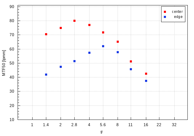 ● Mais venons-en au plus important pour moi, s'agissant des objectifs photos et plus particulièrement des grands-angles. Le dairy est clairement optimiste pour les valeurs d'ouverture <5,6. C'est simple quand on regarde les tests indiquant "la résolution" / piqué de ces optiques, en général il y a une amélioration jusqu'à f5,6~8 puis ça chute. Donc le dairy réel diminue de la plus grande ouverture jusqu'à f5,6~8. Or la formule utilisée considère chaque ouverture comme autant d'instruments parfait (ou disons avec tous la même iimperfection) et donne donc un meilleur piqué (dairy plus petit) aux N <5,6 ce qui n'arrive jamais chez les grands angles.