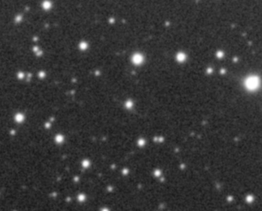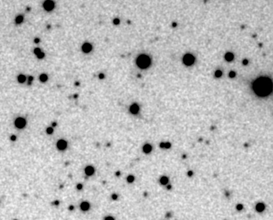 Voici le résultat de 55poses de 90s ce qui nous fait 1h22 au total alors et ben on voit pas grand chose (il faut dire que le temps n'etait pas terrible hier soir) En tirant les niveaux et en inversant on la devine quand meme. En pleine resol c'est un point parmi les points Crop la on voit mieux Crop inversé Amicalement