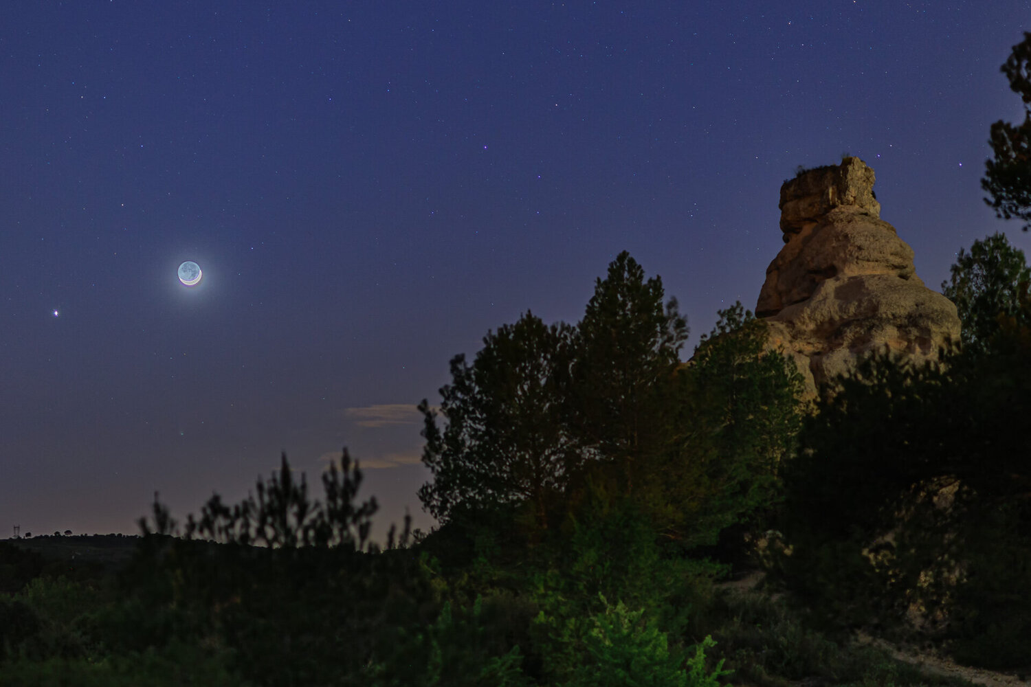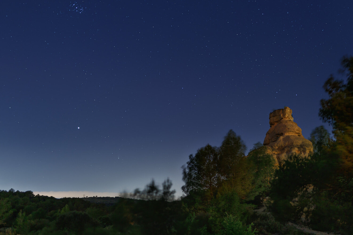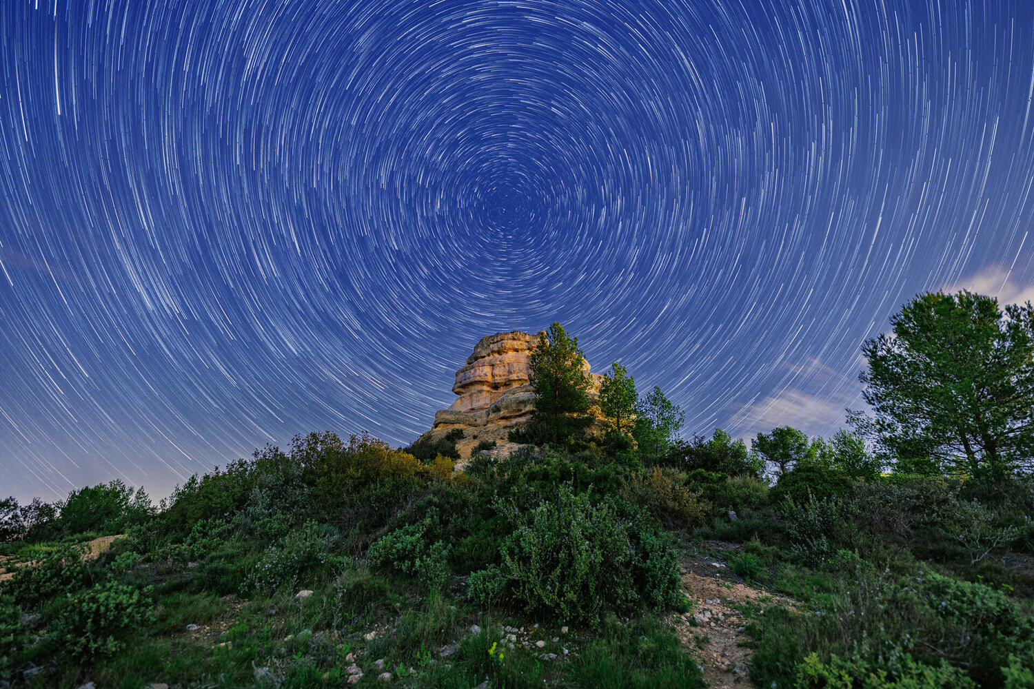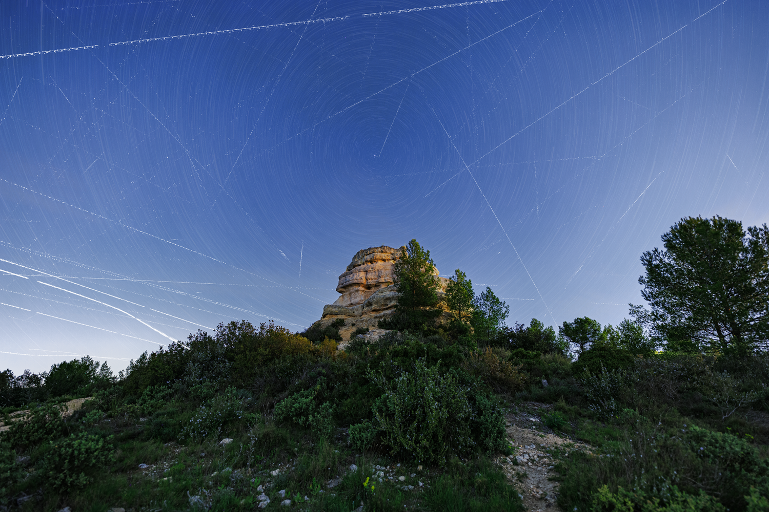 10. Bonjour, Voici un filé d'étoiles autour du Rocher de l'Arbois, au sud d'Aix-en-Provence, le 10/04/2024. Empilement avec Sequator pour le ciel et Photoshop pour le paysage (car Sequator fait des bizarreries sur les paysages) de 90 poses de 30s avec un Canon R6 mk II à 1600 ISO, objectif Sigma 14 mm f/1.4 Art ouvert à f/2.2. A+ Fred