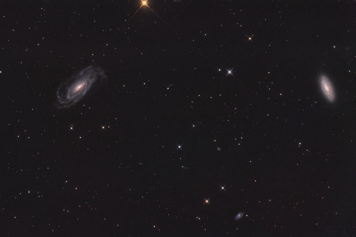 très beau champ bravo ça grouille de galaxies ! Manque un peu de signal et de couleurs. Je pense que tu y gagnerais sur ces deux tableaux en enlevant le filtre L-pro, qui est plutôt fait pour des nébuleuses.