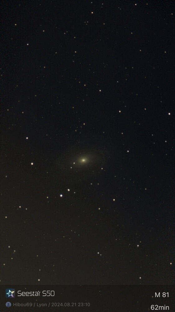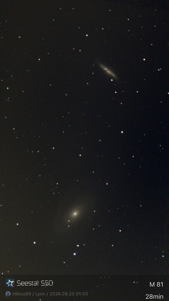 Bonjour, j’avais arrêté l’astronomie venant du Maçonnais pour Lyon centre en appartement entouré de lampadaires. Et le Seestar fraîchement reçu me redonne espoir et me fait revivre cette belle passion qu’est l’astronomie. Ce sont donc deux galaxies dans la pire pollution lumineuse possible !!!