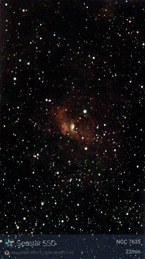 Bonjour, voici deux nébuleuses prises hier soir lors d’une éclaircie en plein Lyon centre ! Je connaissais pas nébuleuse de la bulle mais je l’adore désormais ! A reprendre sous un ciel sombre ☺️ C’est vraiment kiffant ce seestar car malgré la pollution lumineuse il assure ! De plus étant en appartement, j’ai eu accès à ces nébuleuses en le mettant sur une chaise devant la fenêtre de ma cuisine ouverte ! 🤗