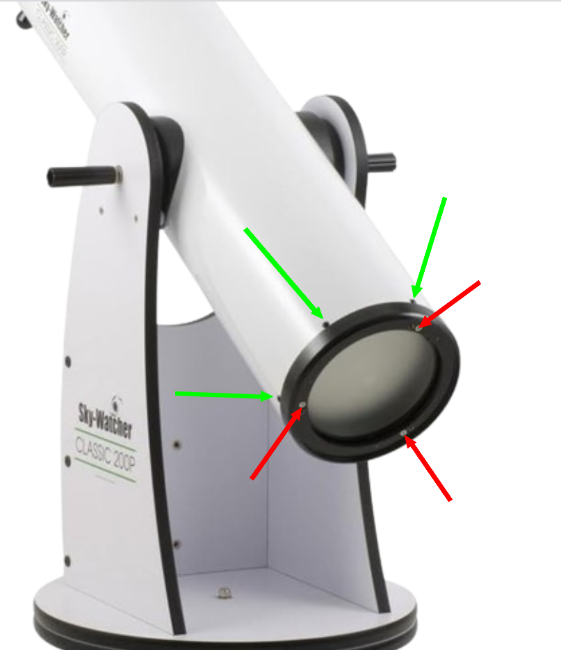 Pour accéder au barillet qui supporte le miroir, il faut démonter les vis marquées d'une flèche verte (il doit y en avoir 6). Ne pas démonter les vis marquées d'une flèche rouge. As-tu fait cela? -