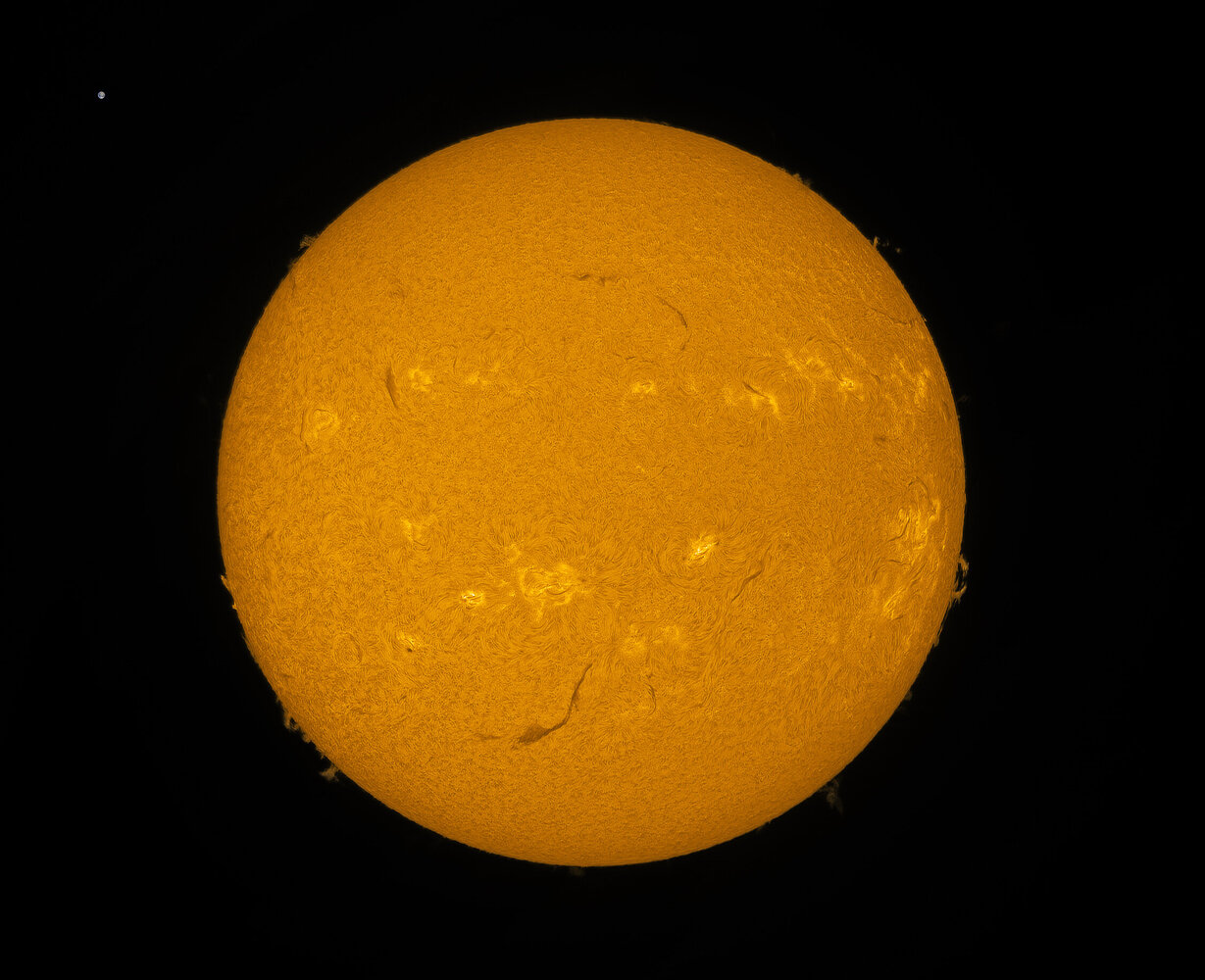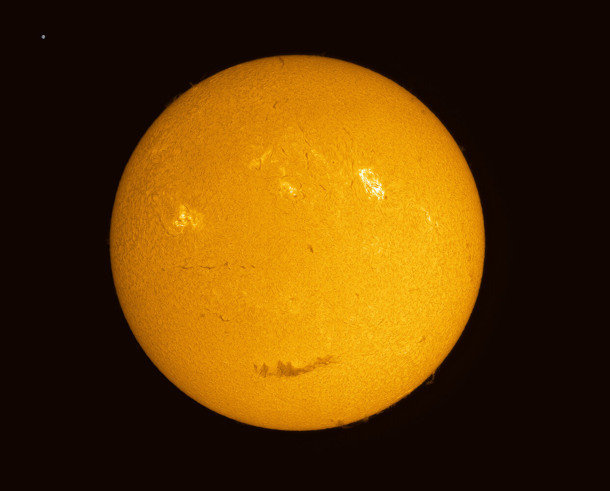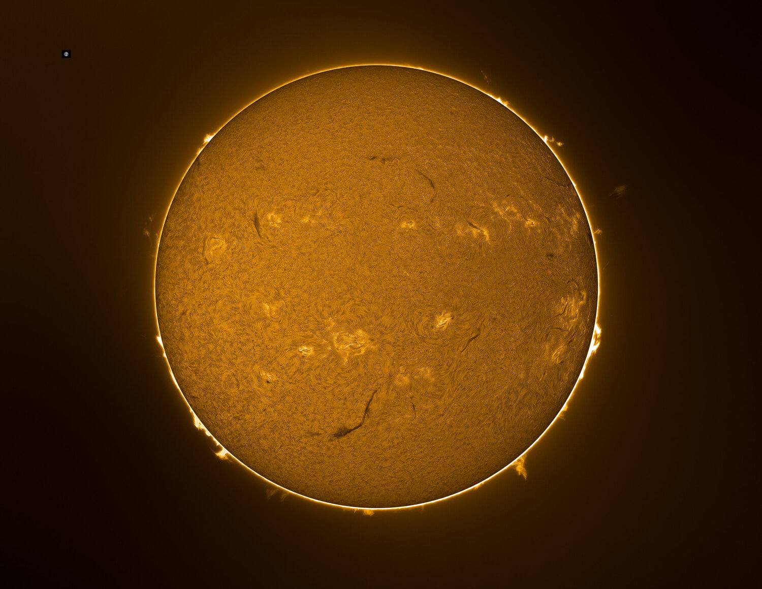 je découvre avec tristesse la disparition de jean-louis que j'avais eu le plaisir de rencontrer il y a quelques années. C'est triste, ses commentaires et appréciations vont me manquer en hommage, quelques images de son astre préféré d'aujourd'hui : A la fs60 muni de son sm40 double stack, BF10, glasspath x1.7 et zwo178mm vers 12h15 HL et en lumière blanche avec l'hélioscope TS sur la fs60 vers 15h HL a+ stéphane -