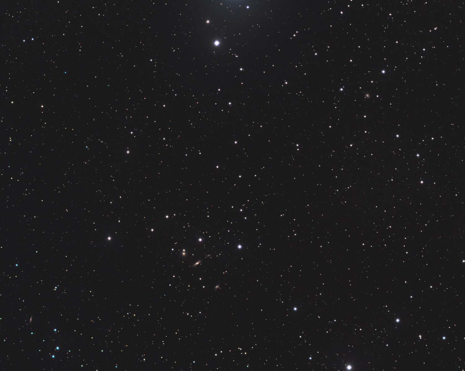 bonjour, une image du 7 Mars depuis chez moi où j'ai eu un poil de beau temps (mais pas d'une folle transparence). Une galaxie perdue dans son champ d'étoiles car j'étais resté à courte focale Atik460ex + filtres LRVB astronomik + fs60 à f/4.2 sur ma GP autoguidage en // avec zwo178mm + zwo30F4 L : 16 x 300s + 6 x 180s en binning 1x1 RV : 7 x 120s en binning 2x2 B : 6 x 120s en binning 2x2 prétraitement imageviewCA traitements iris, siril, starnet, photoshop annotation siril : a+ stéphane