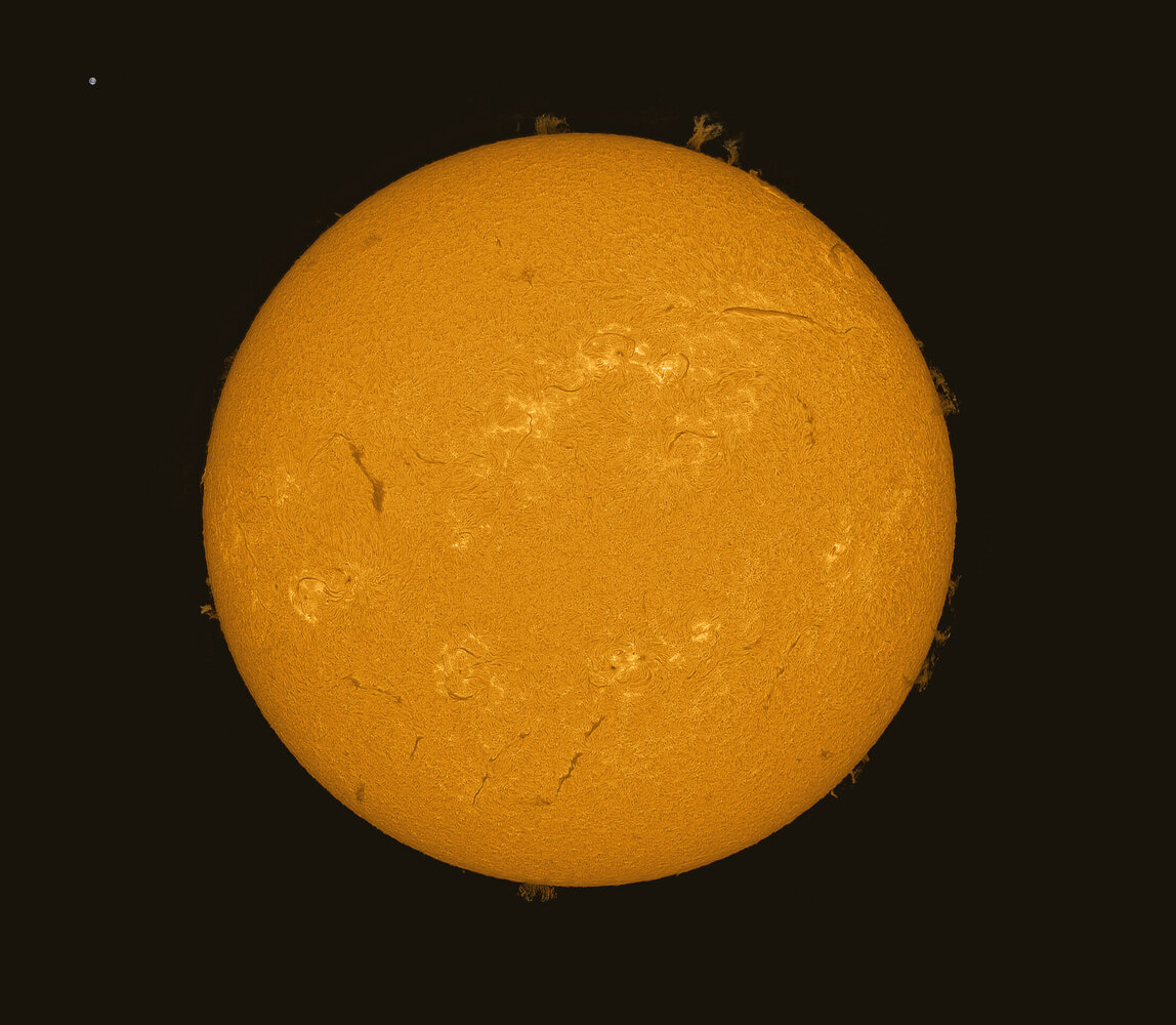 bonjour à tous, le soleil du jour depuis l'observatoire Sirene sur le plateau d'Albion où les conditions de météo sont toujours bonnes ( la vision de saturne et jupiter ce matin dans le 635 vers 3-4h du mat était divine!!!) A la fs60 muni de son sm40 double stack, BF10, glasspath x1.7 et zwo178mm vers 14h HL a+ stéphane