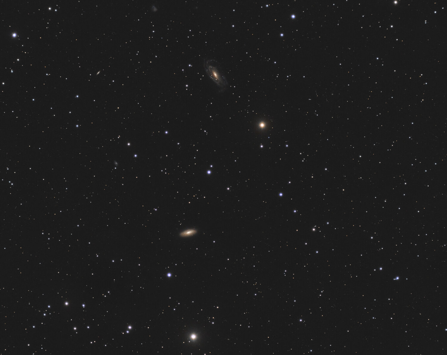 bonjour à tous, toujours avec des brutes retrouvées au fond de mon disque et faite dans le matin du 14 Avril dernier. Toujours un petit champ galactique dans la constellation des Chiens de chasse. Atik460ex + filtres LRVB astronomik + fs60 à f/6.2 sur ma GP autoguidage en // avec zwo178mm + zwo30F4 L : 21 x 180s en binning 1x1 RV : 8 x 120s en binning 2x2 B : 9 x 120s en binning 2x2 prétraitement imageviewCA, siril traitements siril, starnet, photoshop, graxpert Annotation Siril : a+ stéphane