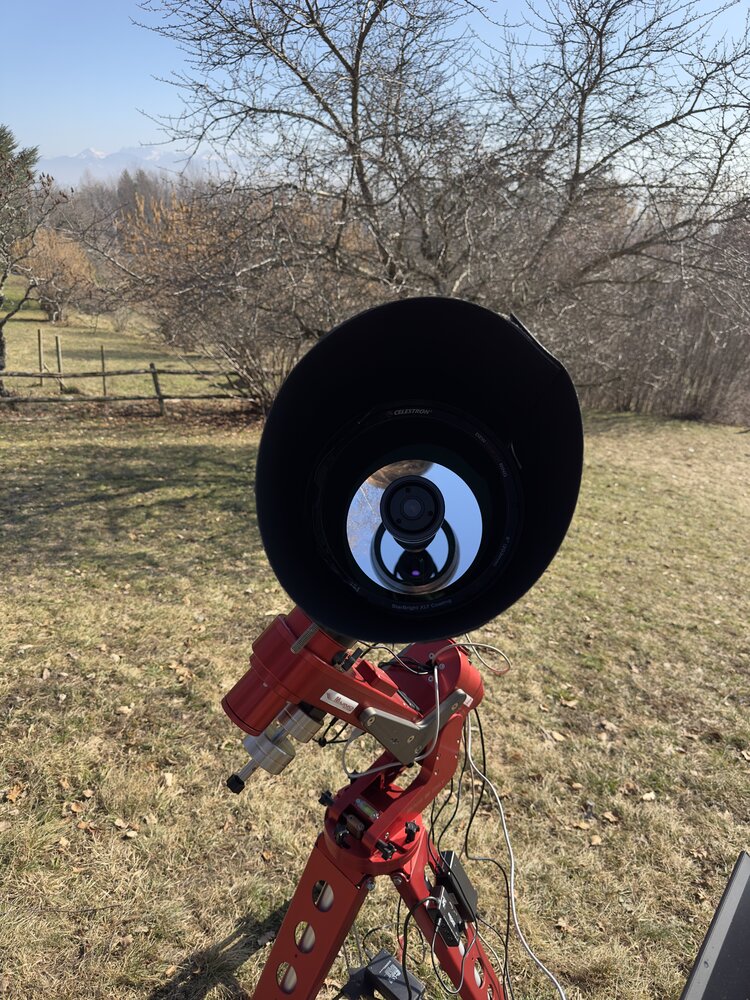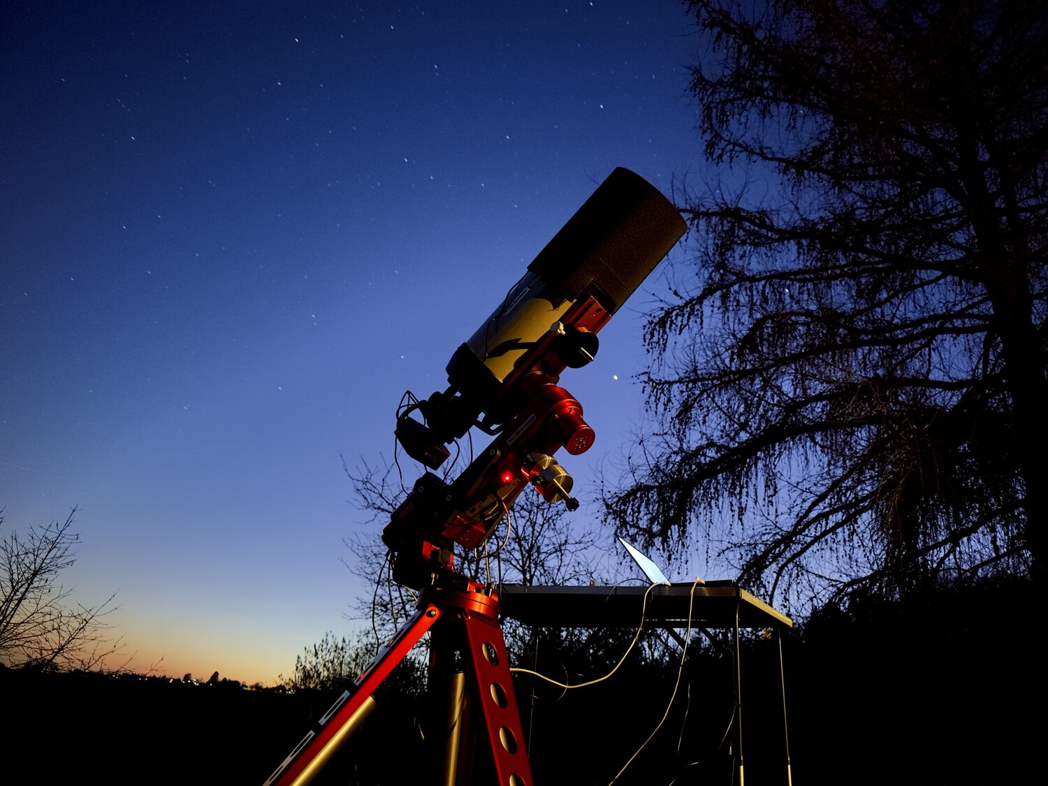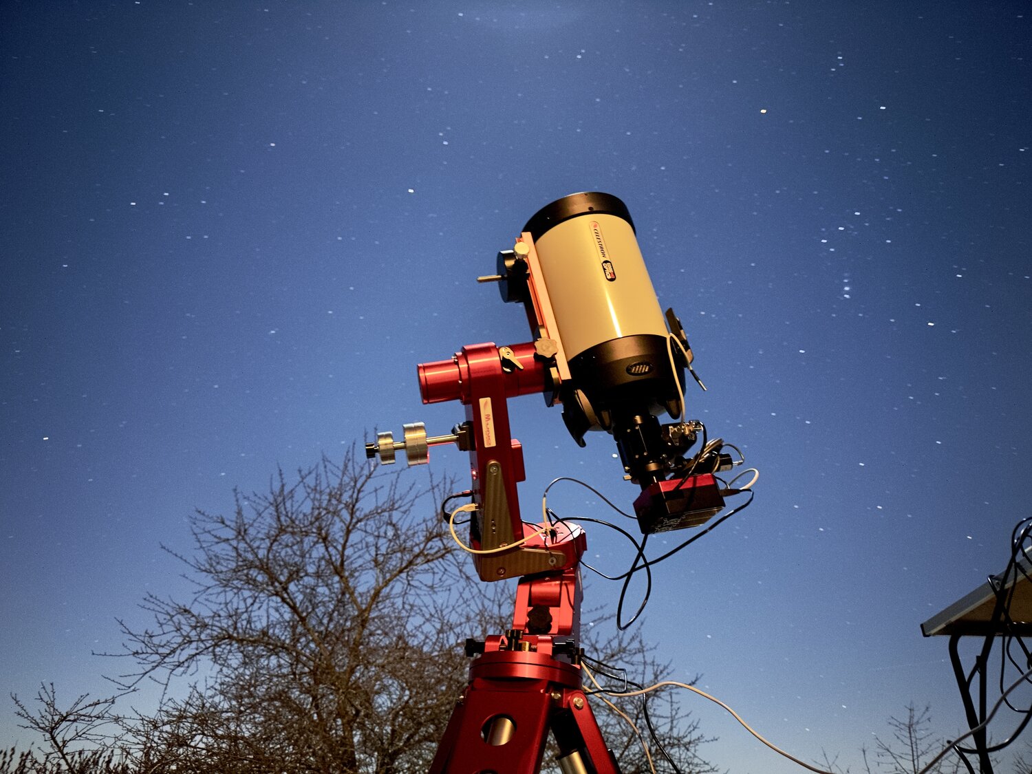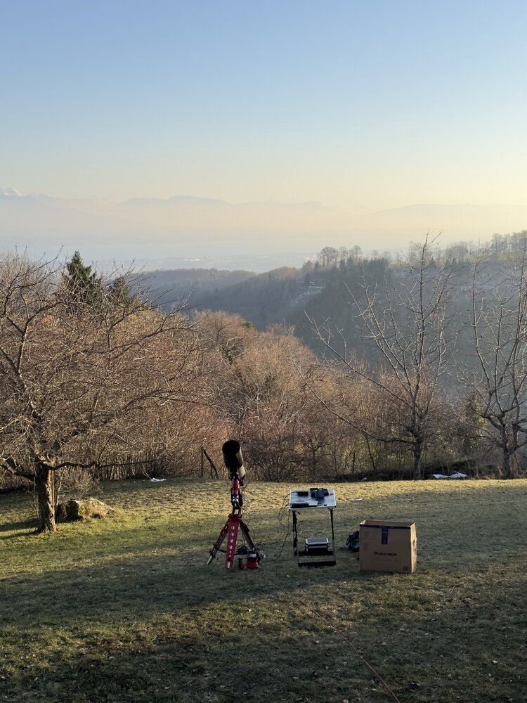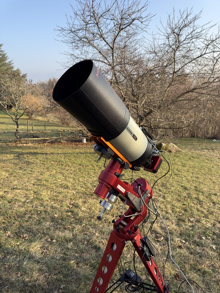 Bonjour à tous, On commence par ce qui vous intéresse certainement le plus, l’image : Après plusieurs semaines à recommencer le traitement de cette nébuleuse, me voilà enfin à peu près satisfait du résultat. J’ai passé presque 7 nuits sur cette image mais comme elle passait derrière un arbre, chaque nuit ne permettait d’amasser que quelques heures. Au final, j’ai retenu 8h de poses en Ha et presque 12h en OIII. En même temps, à F10 il faut bien ça pour cette très ténue nébuleuse. Elle a quand même une chouette tête je trouve même si, encore une fois, il faut poser beaucoup pour sortir un truc correct. J’ai fait plusieurs versions mais je trouvais toujours le rendu, soit trop dur, soit juste moche … Il faut quand même faire très attention à BXT qui charme par sa simplicité mais qui trompe par son agressivité. Je l’ai quand même utilisé mais à faible dose juste assez pour garder un côté naturel à l’image. Mon télescope reste un petit 200mm c’est normal que les détails n’équivaillent pas à ceux que l’on peut obtenir avec un 300 ou un 400mm. Bon, à chaque fois qu’on regarde des infos sur cette nébuleuse ce n’est globalement pas très fourni. Même sur arxiv.org ou ADS on ne trouve rien quand on tape son nom. Apparemment, elle n’intéresse pas grand monde. J’ai quand même trouvé qu’elle possède des « system of low-ionization knots (LI(K)ERs) ». Ces LIKERs sont des zones de gaz moins ionisés que les autres gaz environnants. Cette différence s’expliquerait par le fait que lors de l’expulsion initiale des gaz, certaines zones auraient été plus denses que d’autres créant ainsi une protection face à l’ionisation de l’étoile centrale. Bon, ça reste peu compris mais je trouve l’idée fascinante. Au niveau du matériel, j’ai utilisé un C8 à F10 donc on est quand même sur un 2m de focale ! Avec aux fesses, ma vénérable atik one 9.0 qui fait un boulot incroyable avec ce f/d et le tout sur une monture italienne M-UNO (avalon). Le tout est piloté par NINA qui brille par son efficacité. Je vous laisse avec quelques photos d’ambiance: Voilà, globalement je pense avoir tout dit ! J’espère que l’image vous plaît et si vous avez des commentaires, n’hésitez pas Carlos