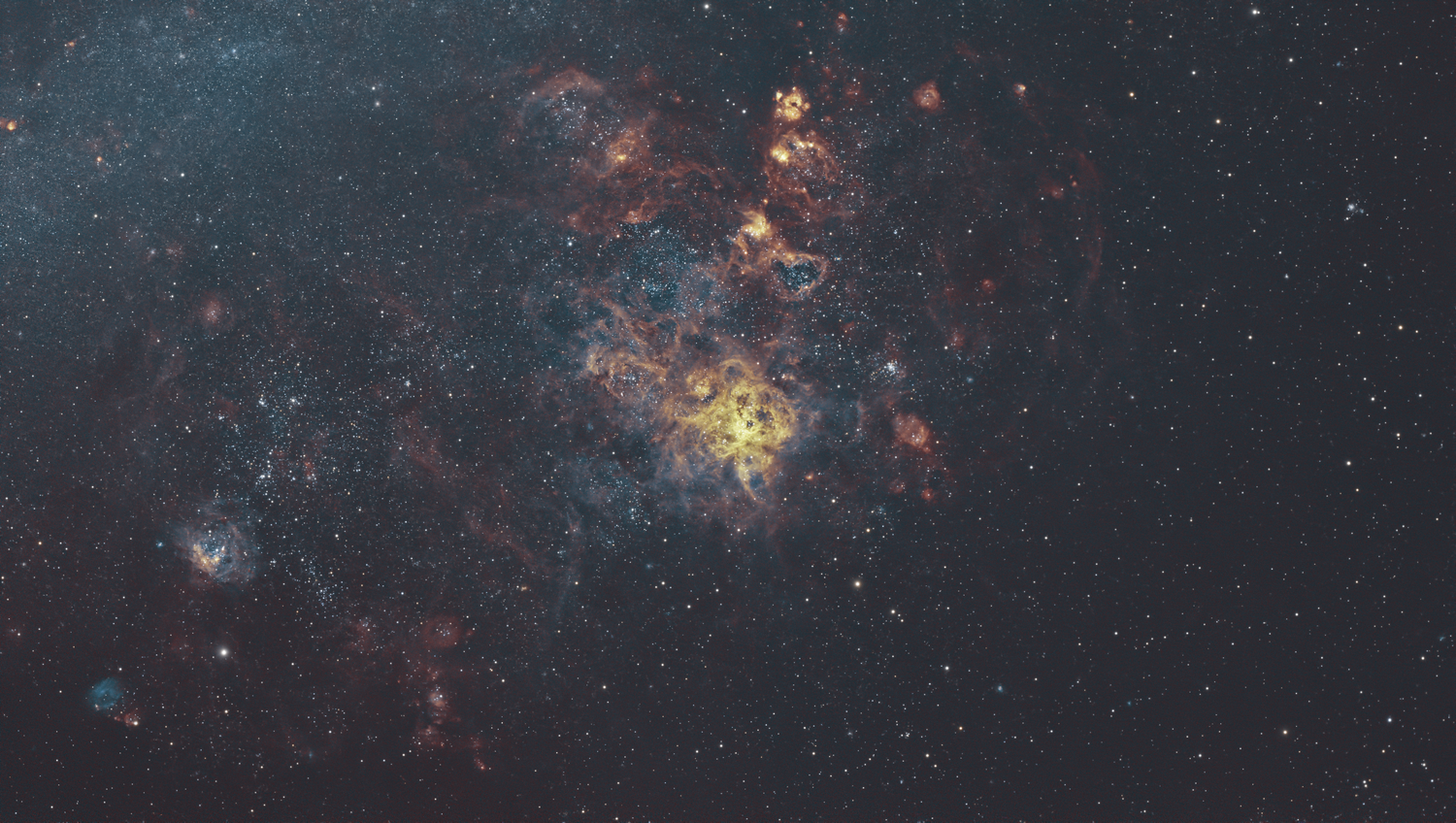 Premier vrai test du Dwarf 3 avec filtre Duo Band J’ai enfin pu tester les capacités de ce petit smart télescope ! J’ai la chance d’être dans l’hémisphère Sud, à environ -22°, ce qui me permet de viser des objets impossibles à pointer depuis la Suisse. J’ai donc jeté mon dévolu sur la célèbre nébuleuse de la Tarentule (NGC 2070), une région située dans le Grand Nuage de Magellan. C’est littéralement la zone de formation d’étoiles la plus active du Groupe Local. On y trouve un paquet d’étoiles jeunes et massives — si cette nébuleuse était aussi proche que celle d’Orion, elle serait assez lumineuse pour projeter des ombres visibles à l’œil nu. Rien que ça. Partie technique J’ai simplement utilisé le Dwarf 3 avec le filtre Duo Band, en poses de 120 secondes grâce au mode équatorial. Et c’est tout ! J’ai eu un petit souci inexpliqué, donc au final je n’ai pu garder que 42 poses de 2 minutes sur les 195 prises… à creuser pour comprendre pourquoi. Traitement Tout a été fait sous PixInsight. Calibration classique, extraction Ha/OII, palettes Foraxx et HOO (j’ai gardé les deux, je ne sais pas encore laquelle je préfère), puis un bon boost de la dynamique et un petit coup de courbes pour finaliser. Traitement assez simple, mais franchement le résultat va bien au-delà de mes attentes. Pour seulement 82 minutes de poses, le signal est dingue. Les détails sont superbes — plaisir maximal avec ce smart télescope ! Et ce n’est que la V1 : je suis déjà en train d’ajouter des poses pour voir jusqu’où je peux pousser le signal. Je ferai la comparaison pour que vous voyiez l’impact de l’ajout de données ! La suite tout bientôt 1) La version HOO 2) La version Foraxx -