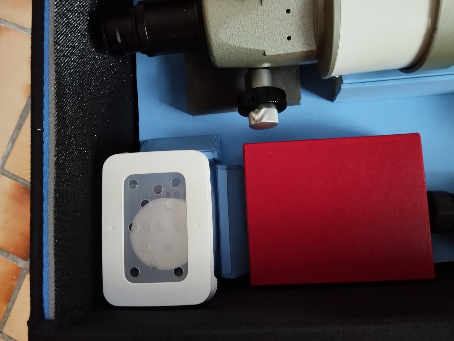 Bonjour @lyl merci pour ce super tuto. J'ai acheté neuve en 2003 une lulu Vixen 102SS ED. Or, en démontant la plaquette tenue par les 4 vis pour la rétrofiter avec l'option Vixen de molette démultipliée, je n'ai trouvé que deux rondelle. Je ne sais même pas ou elles étaient. L'une est tombée comme on le voit, la deuxième était sur l'une des vis (je ne suis plus certain de l'emplacement de cette vis). Le tube est de type soyeux comme vous disiez (celui de gauche sur votre photo). Savez vous si ces vis doivent toutes comporter des rondelles ? c'est curieux car cette plaquette n'avait jamais été démontée depuis son achat neuf. J'ai mis les deux rondelles trouvées vers l'avant sans en ajouter sur les autres vis en pensant que cela servait de réglage... mais juste une cogitation. Merci. Ah tant que j'y suis, savez vous à quoi sert le trous fileté isolé au centre ? re merci 😉