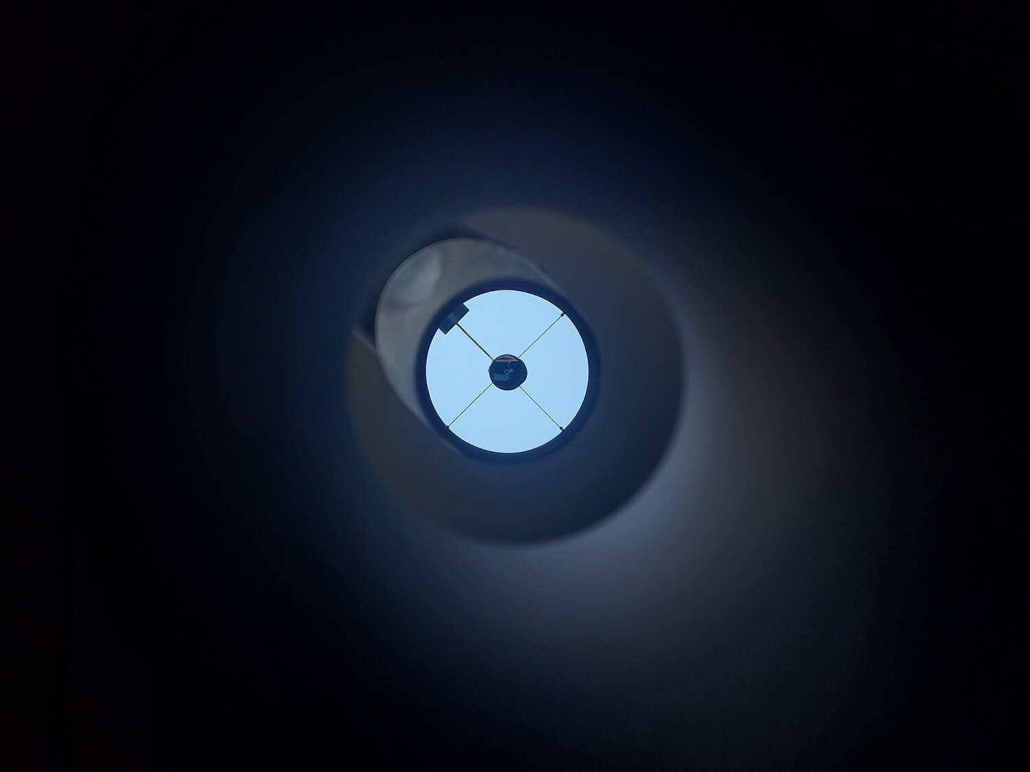 Bonjour à tous, J'ai une question à vous poser concernant les zones à traiter à l'intérieur du tube. Il se trouve que mon araignée est recouverte de couverture de survie, afin de limiter la baisse de température de cette dernière. Je pensais donc la repeindre en noir, mais on m'a conseillé de regarder par le PO (sans oculaire) et au jour, et identifier toutes les surfaces qui reflètent le plus : il apparait que les zones les plus réfléchissantes sont l'intérieur du PO, la tranche du secondaire, et la face opposée du tube derrière le secondaire. L'araignée, quand à elle, est quasi insignifiante (cf photos ci-dessous). => Qu'en pensez vous ? Quel est votre avis ?