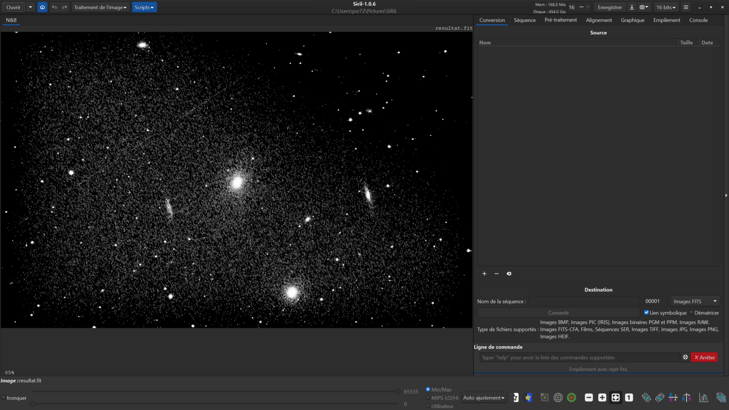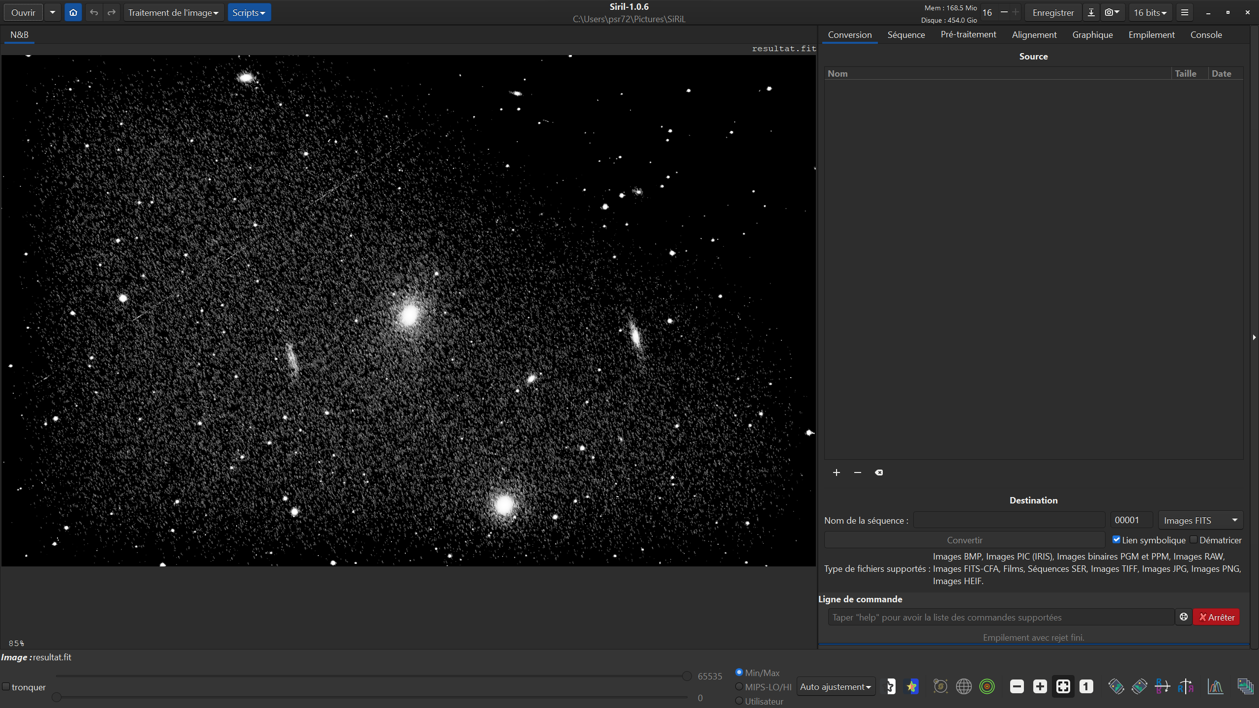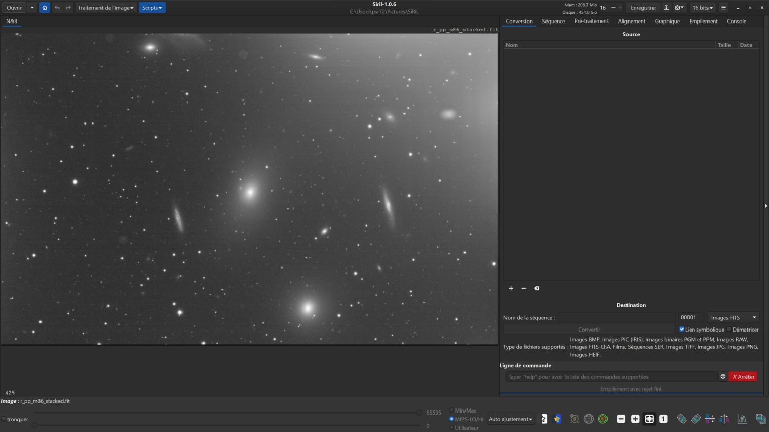 J'utilise SiRiL, souvent, et j'en suis très content mais... avec ma petite ASI 174 MM ca se corse... Déjà de base, il y a une lueur blanchâtre sur les brutes dans un coin de l'image et ce, depuis le début. Ce ne fait ca sur aucunes de mes caméras... Ensuite, j'ai traité avec le script automatique pour le mono et l'image est extrêmement noir et dégradée... inutilisable. J'ai donc décidé de faire le processus en manuel et là ca va bien mais... J'ai toujours cette lueur blanche. Donc voilà 😅Je suis preneur d'un coup de main là parce qu'il y a un truc qui m'échappe...