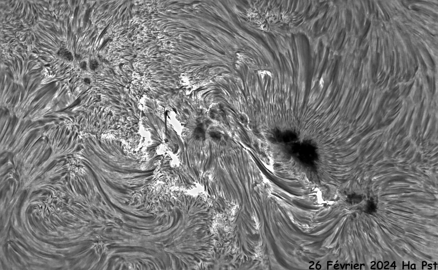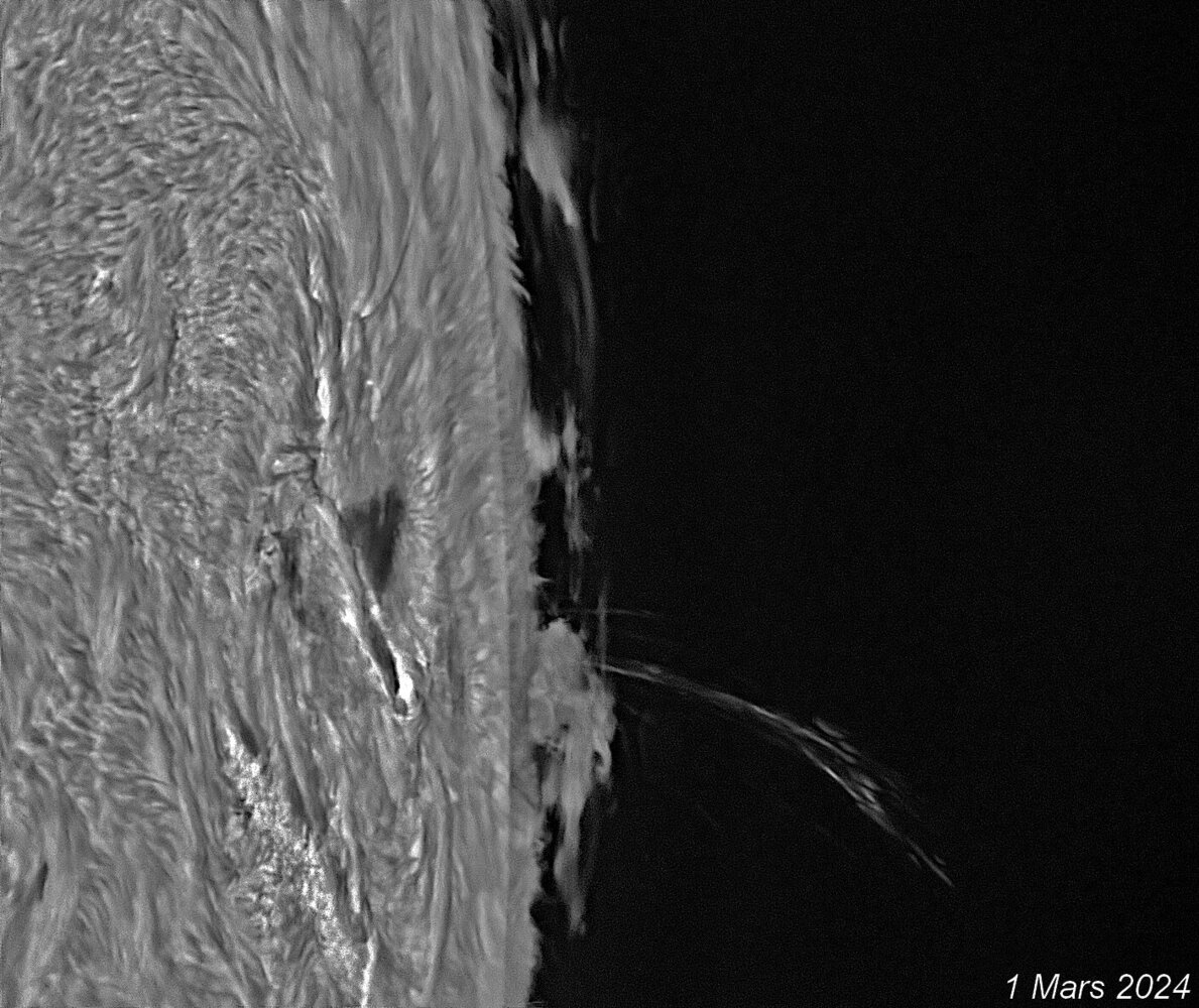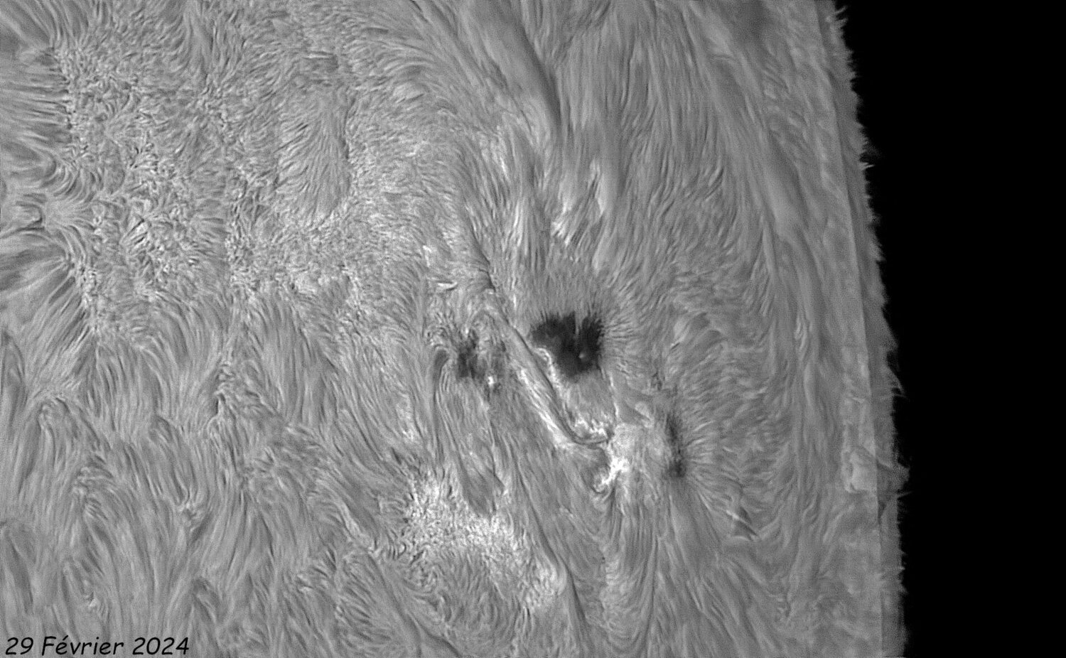 Objectif Istar 200/1800 d-erf en entrée modif Pst barlow X2 asi174MM gain suivant transparence 180/220 expo10ms . 400i toutes les 30s retenues 20 avec AS4 fichier .conv ton clair/foncé renforcement 8 gain 60 imppg pour le centrage Photoshop pour éclipse et horodatage Pipp pour le gif Paul