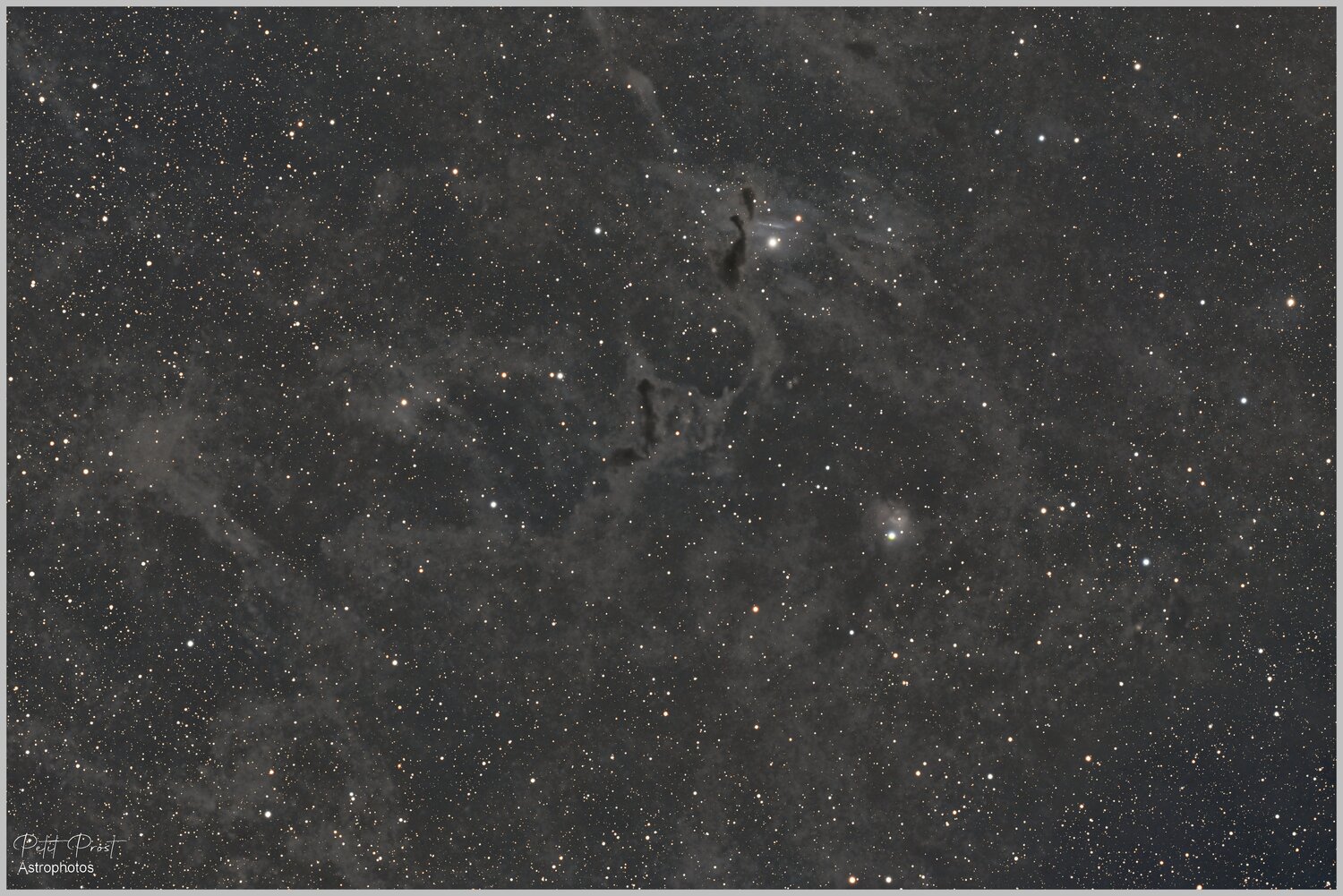 22. Bonjour à Tous , J'ai profité d'une nuit bien dégagé pour tester mon nouveau filtre Player One Ir-Cut Anti Halo . J'en ai profité aussi pour le tester sur les nébuleuses obscures et ben c'est bien obscure et pas facile à traiter . 50 poses de 240sec sur Posseidon-C , Askar FRA 400 , filtre Anti Halo . Prétraitement Siril et Traitement PIX J'y suis allé avec beaucoup de retenus mais suis preneur de conseils dans la traitement de ces nébuleuses ! Eric