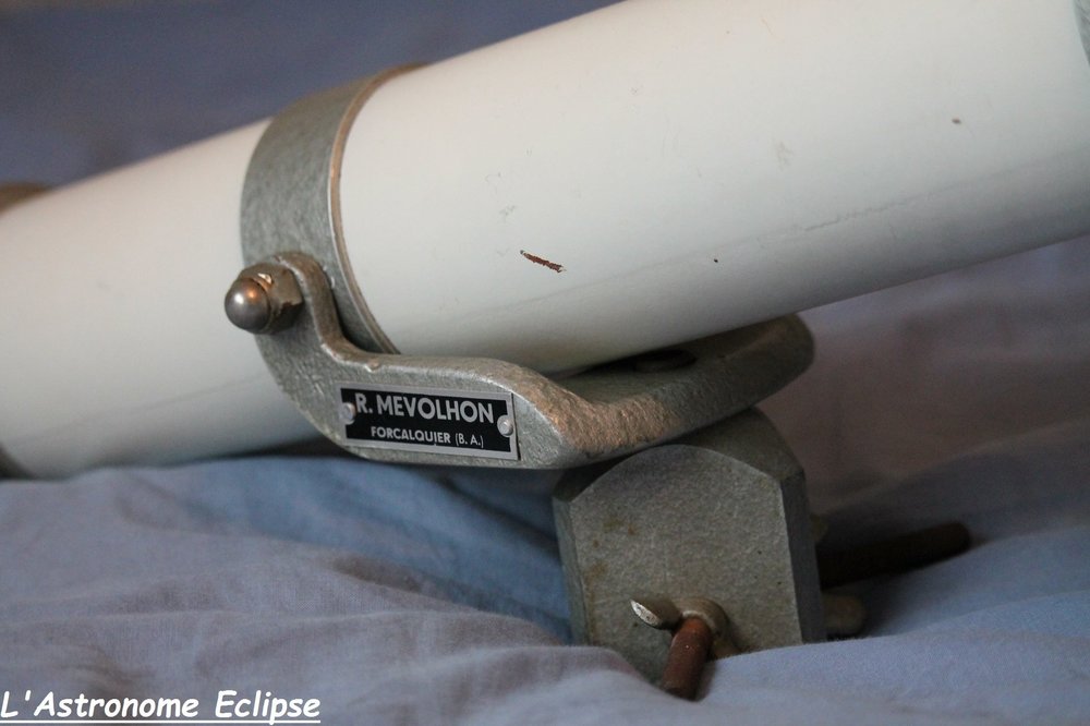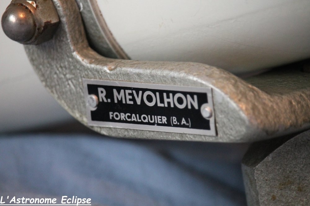 Bonjour à toutes et à tous, Attention, topic 100% franco-vintage en approche... Je m'apprête à vous parler d'un télescope construit par un astronome aujourd'hui méconnu, alors qu'il était très célèbre en son temps. Les astrams de moins de 30 ans ne l'ont probablement pas connu, et ceux de plus de 30 ans en parlent très rarement... J'ai récemment acquis un tout petit télescope: il s'agit d'un Cassegrain de 90mm de diamètre, installé sur une monture à fourche de type Magellan. Je n'ai pas encore mesuré la focale mais je pense qu'elle est comprise entre 1200 et 1500 mm. Cet instrument a été construit par... l'astronome Robert Mevolhon, jadis situé à Forcalquier! Avant d'aller plus loin, voici quelques photos: Je n'ai pas connu Robert Mevolhon et ai donc mené quelques recherches. Internet ne donne que très peu d'informations ( 1 info sur 2 se trouve d'ailleurs sur Webastro et Astrosurf!). Monsieur Mevolhon a travaillé à l'Observatoire de Haute Provence (OHP) dans les années 60. Il disposait paraît-il de son propre atelier d'optique. Les astronomes qui l'ont connu disent que ce monsieur aimait le travail bien fait: les instruments qui sortaient de son atelier étaient toujours d'une qualité irréprochable, aussi bien en terme d'optique que de mécanique. Certains de ces instruments n'ont été construits qu'en un ou deux exemplaires. Robert Mevolhon est également à l'origine de la société Sécia (implantée à Manosque). J'ai aussi croisé le nom de Sud-Optique, alias l'ancien nom de Sécia... Il est bon de savoir que Robert Mévolhon, outre sa maîtrise des lois de l'optique, fréquentait des personnalités comme Danjon, Couder, Clavé, Texereau. Dans les années 50, il a également contribué à l'achat initial de la lunette du père Josset pour le compte de l'industriel Léon Guintrand. Si au passage vous avez d'autres informations sur Mevolhon et ses télescopes je suis preneur. Si certains d'entre vous l'ont même connu et souhaitent apporter un témoignage ce serait encore mieux! Pour en revenir à mon "nouveau" télescope, j'envisage de l'installer sur un trépied en bois. Les rares photos d'instruments Mevolhon montrent que les trépieds d'origine étaient souvent en métal. Toutefois, je pense qu'un trépied en bois apporte une note de nostalgie comme on l'aime dans le club Vintage! Cela donne un certain cachet aux instruments et mon "petit télescope blanc" mérite d'être chouchouté... En terme d'observation, je n'ai pas encore pu le tester. L'aluminure du miroir primaire est faite à l'ancienne et accuse son âge: elle se détache très facilement! Je n'y touche pas pour le moment afin de conserver le télescope dans son jus. Son état moyen n'empêche pas d'utiliser l'instrument. On notera que le miroir primaire porte l'inscription "Très Bon" sur sa tranche, ce qui m'a rendu très enthousiaste lorsque je l'ai découverte! Le porte-oculaire, quant à lui, est fixe: pas de mise au point possible! L'oculaire fourni de base a été conçu spécialement pour ce télescope, et sa position est donc calculée avec précision. Pour refaire la mise au point, il suffit de tirer ou pousser l'oculaire. Le coulant est atypique (22mm). Il est possible d'utiliser des accessoires au coulant 27mm moyennant un tube adaptateur Clavé; les oculaires en 27mm peuvent donc convenir mais se situent un tout petit peu trop loin du foyer. L'adaptateur Clavé est donc trop long. A charge pour moi de trouver un tube plus court... La monture est rudimentaire mais efficace. Le télescope garde sa position par un simple serrage. Je ne manquerai pas de vous parler de ses performances lorsque j'aurai pu le tester. A suivre! Merci de m'avoir lu! Astro-amicalement, Astropleiades -