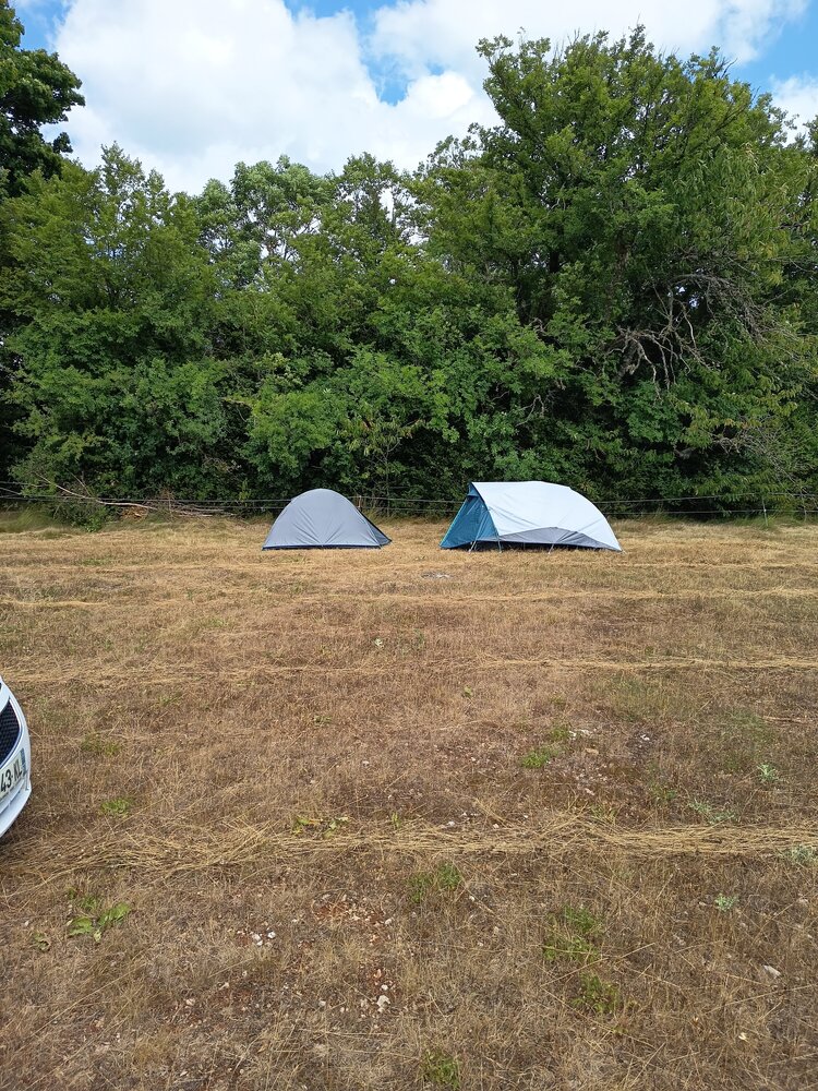 Prends rallonge, multiprise et tu peux prévoir deux tentes mais je pense que ce du visuel vont pas trop apprécier si on leur pique tous les places à l'ombre de chez eux... Le matin le côté visuel est en plein soleil pendant que moi qui me suis collé bien le long avec ma toile de tente j'ai de l'ombre jusqu'à midi et pour ma petite sieste de l'après-midi je la fais côté visuel sous un arbre car c'est à l'ombre...et mon séjour qui est en plein soleil pendant toute la journée... -
