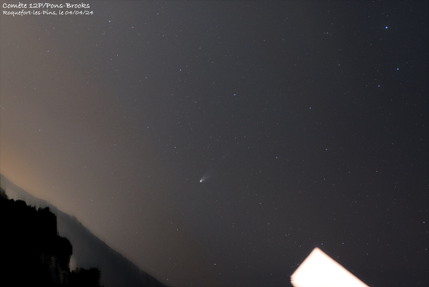 1. Bonjour à tous, Une photo prise il y a deux semaines, entre les nuages et avant la disparition de la comète vers l'horizon... Un simple souvenir de son passage, photographié avec le Pentax KP et un objectif macro 90mm (à f/3,2 - 5 poses de 20 secondes). Une comète bien moins brillante qu'annoncé... Attendons de voir ce que va donner la comète Atlas ! Bonne journée à tous. Aurélien
