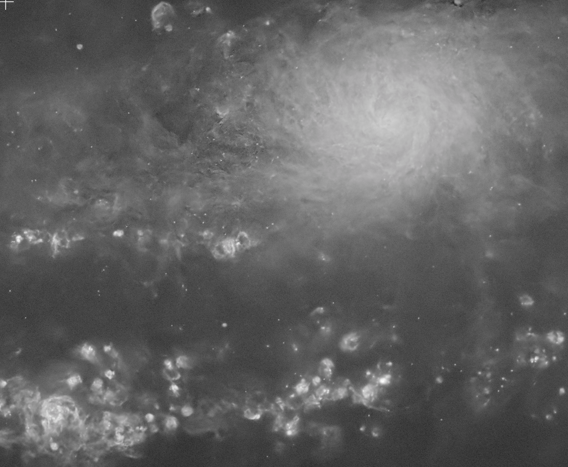 Salut à tous, Je remonte un peu ce sujet car j'ai repris cette image avec la technique de la soustraction du continuum. J'avais déjà testé avec les script SETUASTRO mais sans résultat probant. J'ai repris un peu de 0 donc avec des script plus général et manuel en me basant effectivement sur la technique de Jordane mis en oeuvre dans sa vidéo et adapté à ma photo. Je vais donc partager dans un 1er temps l'image Ha qui est bien plus intéressante comme ça: La Full: Et un petit crop du centre qui n'reste difficile à exploiter, j'ai un peu réduit son intensité pour le traitement mais l'intégration est bien plus facile à faire dans le RVB comme ça Et l'image intégrée avec la RVB en nouvelle version donc: Voilà je vais arrêter là elle ma donné des sueurs cette image! -