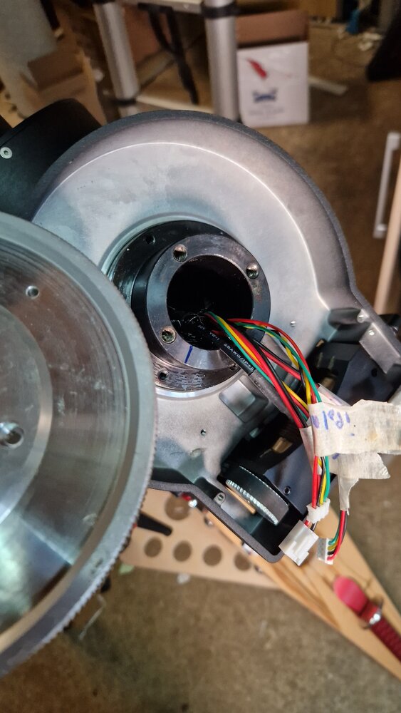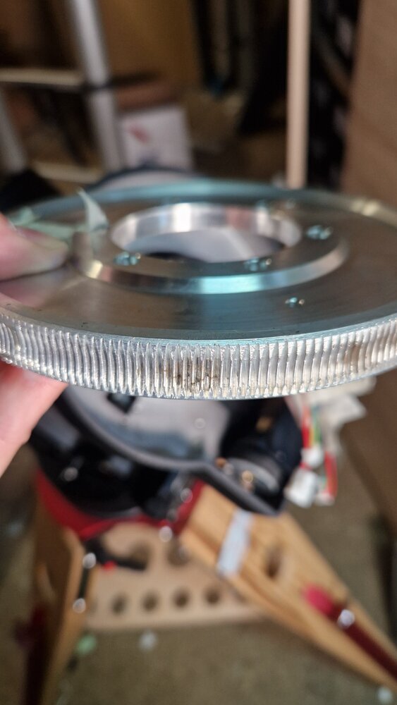 21. Bonjour à tous, Je ne vous apprends rien l'année 2024 et ce début d'année 2025 c'est pas ouf côté météo et le matériel n'a pas trop bougé. De mon côté j'ai eu l'occasion de sortir le Matos à la dernière nouvelle lune et j'ai pu remarqué un guidage .... approximatif avec quelques pic par-ci par là au guidage, entre autre au niveau DEC. Donc comme je n'ai jamais fait d'entretien sur ma CEM70 depuis son achat y a 4 ou 5 ans, je pense qu'il est temps. Donc Démontage du machin et j'ai pu remarquer que j'ai un petit point dure au niveau de ma Vis Sans fin en DEC et je vais donc changer les roulements REF 62900 Z (ou ZZ) sauf qu'aux prises de mesure ... ils font 22x10 ... ok jusque là mais 7mm d'épaisseur .. ça ne semble pas standard je n'en ai trouvé sur nos sites FR que des des 8mm ... Bon j'en ai trouvé sur Amazone mais bon ça ça ne m'enchante pas trop mais bon on verra bien car je vais changer les 4 Autre truc mes courroies sont assez sèches et quite à tout démonter je vais les changer aussi REF86MXL et là pareil épaisseur de 8mm mesuré au pied à coulisse .... encore pas standard et là je n'en trouve que des 6mm ou 10 mm Bon quand je vois l'espace qu'il y a sur les roues dentée 10 je pense que c'est trop ça va frotter le carter (comme c'est déjà le cas parfois !!) Avez vous une idée de ou je peux en trouver en 8mm ou alors est ce que pour vous 6mm c'est déconnant ? Merci Quelques photos pour les curieux