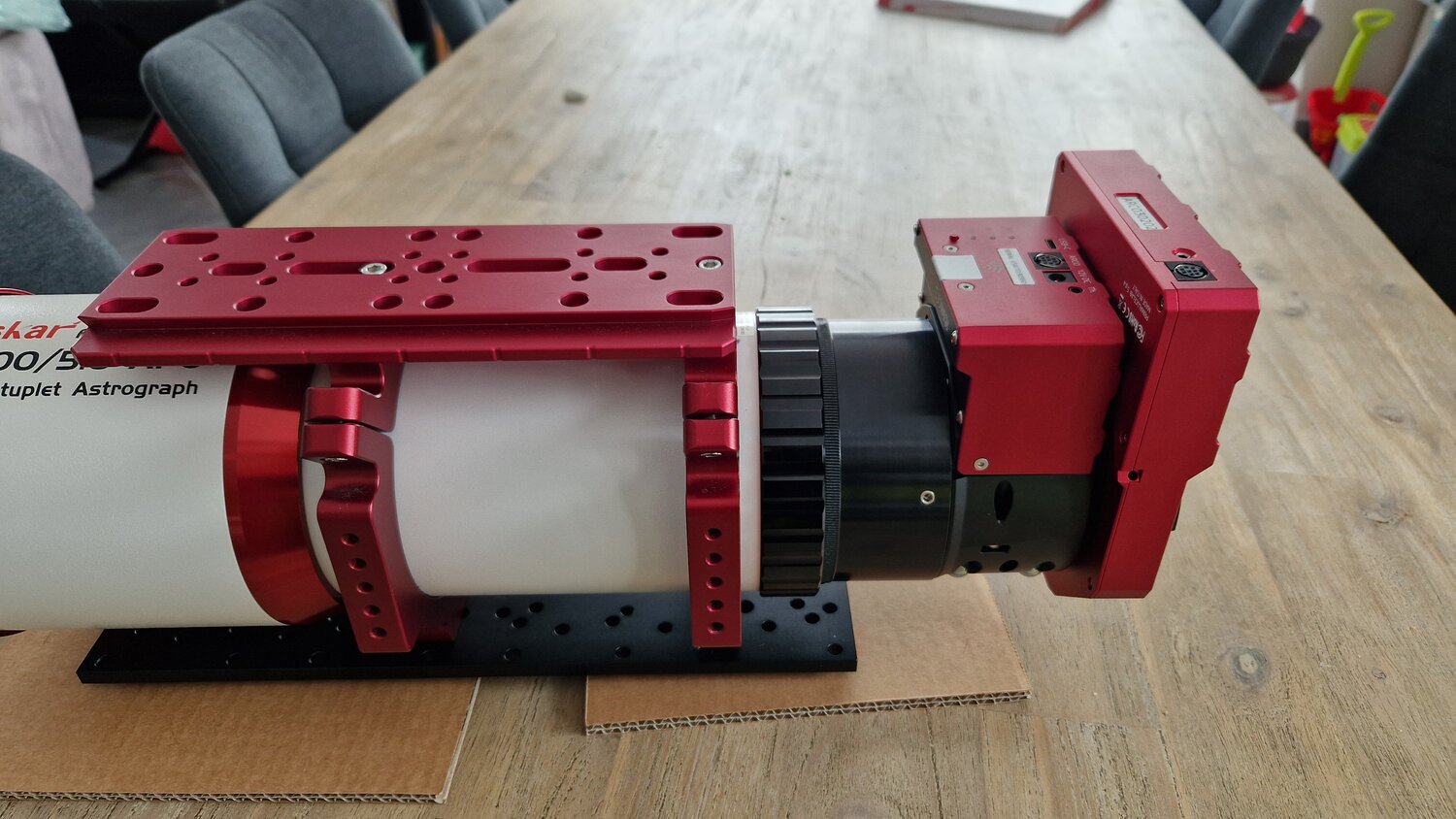 Bonjour à tous, Je me permet de vous partager mon projet de modification d'une FRA600 pour un REMOTE performant. Le But est un REMOTE en Espagne pour cet été et dans ce projet je pars d'une feuille blanche !! C'est plaisant MDR!! Le but est d'avoir quelque chose de fiable sans prise de tête mais aussi performant !! J'avais le choix par exemple de partir sur mon 250 F4 OOUK ou j'ai fait quelques modifications aussi mais clairement trop peur de la collimation qui bouge dans le temps !! DONC out les Newtons. Le choix est donc orienté vers une Lunette et encore pour de la simplicité d'utilisation, une optique type PETZVAL sans prise de tête de Backfocus. TAKA... FSQ106 ?? bon déjà faut en trouver et clairement le PRIX ..... C'est mort! Alors je pars vers de l'ASKAR, j'aurai aimé une optique 120mm mais ça n'existe pas en PETZVAL chez ASKAR donc je me suis retranché sur la 108 F5.6 FRA600 qui tome parfaitement bien dans ce projet. Second Avantage c'est aussi d'être en contact avec ASKAR directement et avec qui j'ai négocié une Lunette SANS LE PO!!! oui oui c'est toujours ça de gagné!! Cette lunette à un but particulier d'où l'envi d'avoir une lunette fiable à tout point de vue. Certain me diront que j'aurai très bien pu mettre un petit focuser ZWO tout en gardant le focuser d'origine mais clairement la performance des focuser robotiques (PEGASUS ou PRIMALUCELAB) m'a fait délaisser tout les autres types de de focalisation automatique qu'on ajoute à notre focuser d'origine. Bref j'avais donc le choix entre PEGASUS et PRIMALUCELAB mais c'est le système 3" associé au rotateur qui à gagner dans ce projet. J'avais déjà l'expérience d'installation de ce focuser sur un autre ASKAR (SCA260) et je savais que je n'aurai pas trop de mal à trouver de quoi faire la bague d'adaptation. Maintenant que tout est choisi il fallait bien calculer la longueur de la bague d'adaptation pour atteindre la MAP MAIS en plus de ça garder de la marge pour ajouter une autre bague allonge après le rotateur pour permettre derrière l'ajout du système imageur AVEC DIVISEUR OPTIQUE !! Si on n'ajoute pas de bague allonge entre le DO et le rotateur .... Bah en fait le DO vient taper dedans et le montage est impossible. Bon là rien de très compliqué ! on prend les schémas, les mesures etc... je vous fait pas de dessins. Tout est maintenant arrivé, installé et fonctionnel et je me suis dit que je pouvais partager quelques photos de ce setup qui devrait faire ses 1ère lumières dès que la météo sera bonne afin de vérifier les images, la MAP, le TILT caméra etc... AVANT le départ en ESPAGNE. J'espère que ce petit speech n'était pas trop long voici les photos du setup La Bague: LA Lunette Et ça rentre dans la valise -
