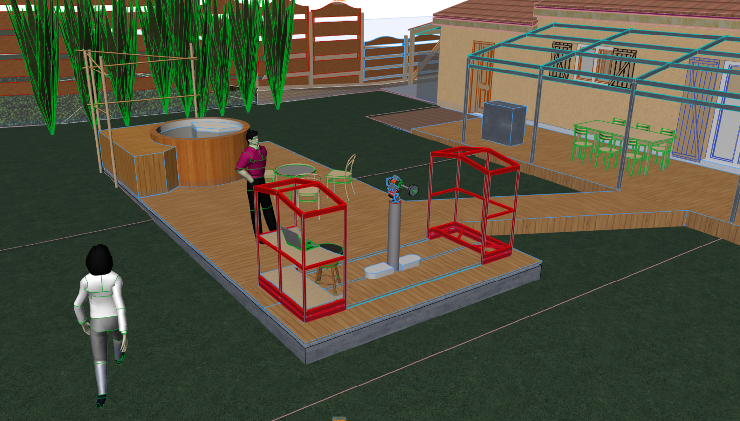 Salut les Astrams. Ca fait bien 10 ans que je rêve d'avoir un abri automatisé pour ne pas devoir sortir à 4h00 du matin protéger le matos. Maintenant que j'habite ma "dernière demeure avant l'EHPAD" je sens comme une urgence ! 😉 L'ancien proprio de ma maison Cévenole avait fait couler une dalle lourde pour porter une hideuse piscine hors sol, en ruine... on a fait dégager la piscine qui gachait la vue, mais la dalle reste, juste à 5m00 de la maison. Testé, approuvé, on peut sauter à pieds joints, ça ne vibre pas, restent les turbulences quand la dalle est échauffée au soleil, ça devrait s'arranger avec la terrasse en douglas sur longrines (ventilé, moins d'accumulation). J'ai d'abord imaginé "L'Observatoire". le truc dans le quel on rentre par une porte de .... 1m50 et ou on se fracasse le crane en sortant. pour pouvoir tourner autour de la monture il faut mini 2m x 2m, c'est gros, juste en face de la baie vitrée... en hauteur on arrive vite à des trucs moches. ca coute cher (matériaux, surfaces de bardage) le toit roulant va empiéter sur le gazon... bref... c'est non. Donc j'ai imaginé ça, le dessin parle tout seul. J'aborderais ensuite les questions assez nombreuses qui subsistent concernant la motorisation, les rails, le guidage, les liens ASCOM (je sais souder mais et personnaliser un Onstep.. pas écrire de code ni concevoir ou réaliser un CI). Images d'où j'en suis à ce point précis, ouvert / fermé. A ce stade, les deux blocs (profil 60x30 acier) roulent sur 2x4 roues de trottinette de 100mm guidées par des profils U, et au pied de la colonne il y a deux moteurs de portes de garage à courroie mais... ça me plait à moitié... J'ai pensé vis sans fin (filetée de gros calibre et un moteur par élément) ou courroie tendue fixe et moteurs dans les éléments) mais dans les deux cas des câbles qui vont faire c...r à la fermeture. je vous prie de noter ma modélisation succincte mais globalement exacte de la GEM 45 🙂 faut que je dessine la Taka. Mais bon, ça rentre en position park à l'horizon et je ne perds rien du champ de vision libre une fois ouvert. J'espère bien entendu attirer votre attention car je suis certain que la communauté peut m'éviter des erreurs, des plantages, des complications inutile etc.... A votre bon coeur MsieuDames. @Cedric02700 @Colmic pour l'Arduino... @gerard33 pour les concepts et la mécanique etc etc.... La bis et bonnes fêtes à tous. JMD -