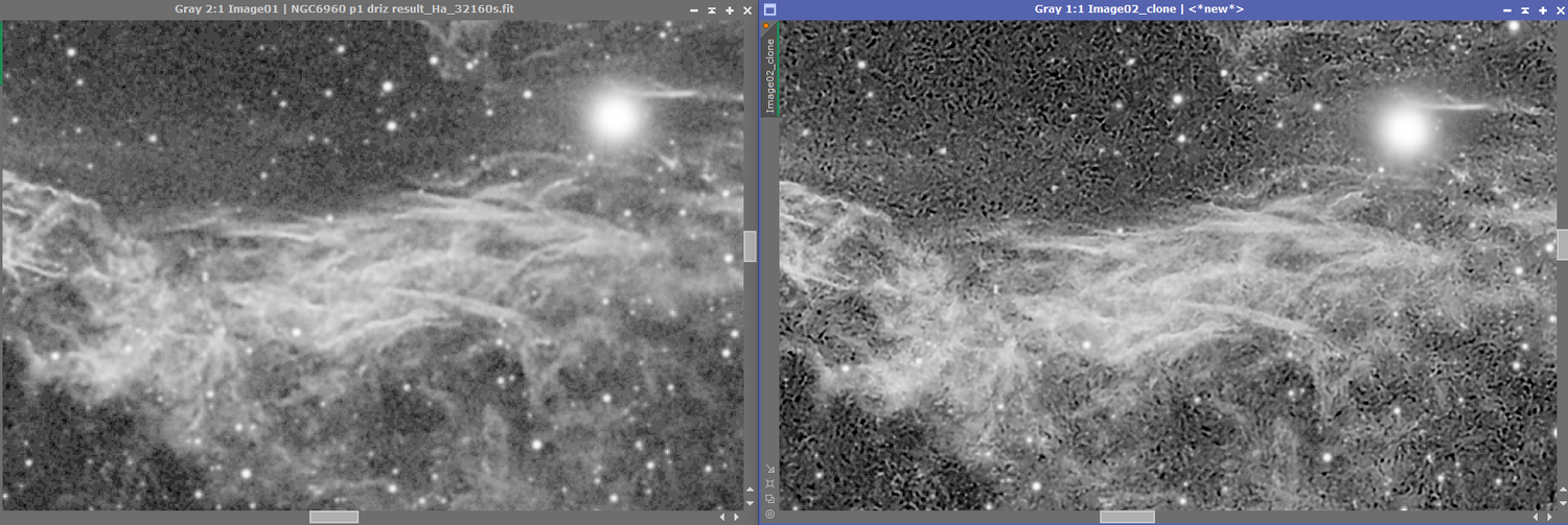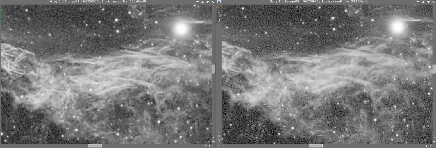 Non je fais le drizzle sur les couches séparées dans Siril dans le script d'extraction Ha/Oiii Enfin pour être exact, j'ai repris la séquence pp_Ha et j'ai réaligné en drizzle ici C'est pas bon?