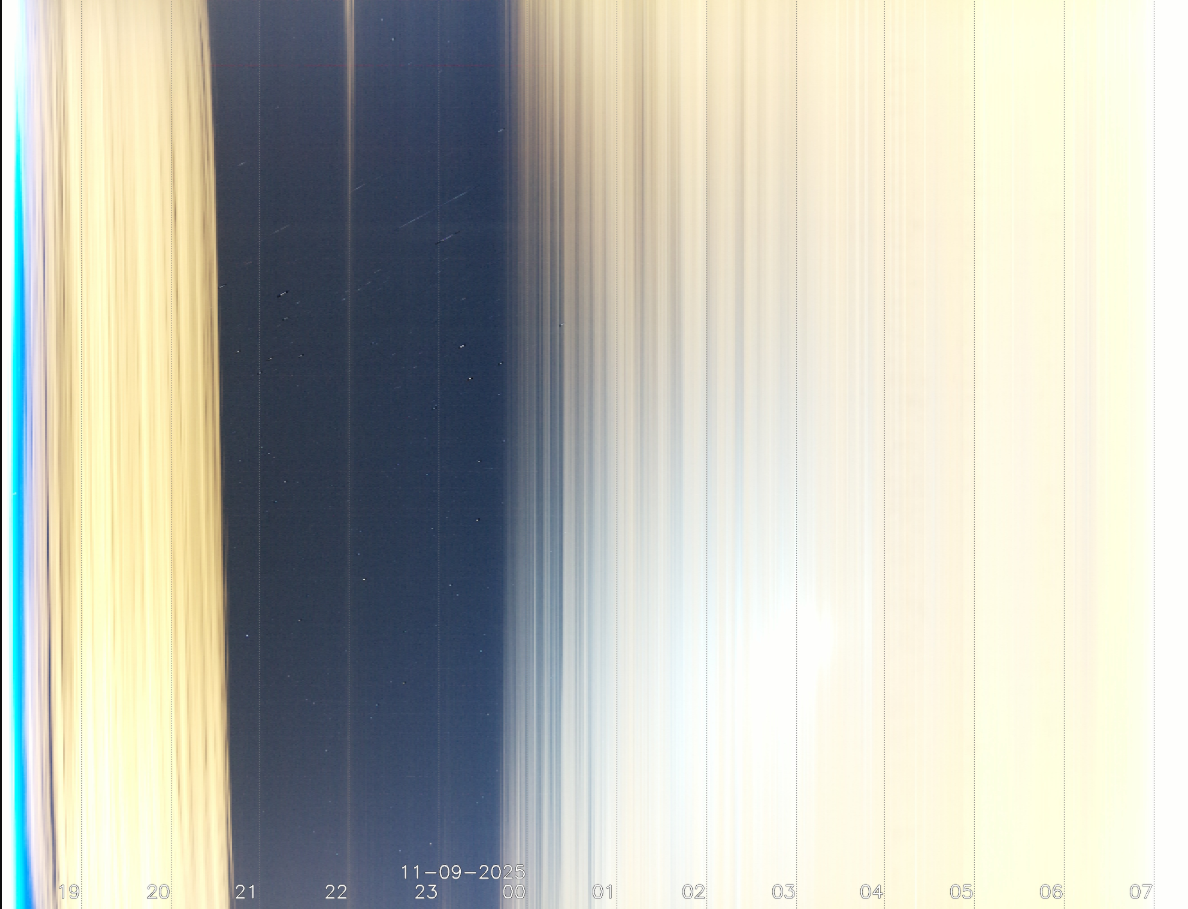 A vos caméras! Éruption X5.1 hier le 11/11 qui rattrape une première. C'est déjà arrivé ce matin vers 4h30 et ça va être gros ce soir début de soirée. Image de ma caméra en ville à 4h50 (copie d'écran sur mon tél). Faut que je tourne ma caméra de 90° en rentrant... A+ Sam