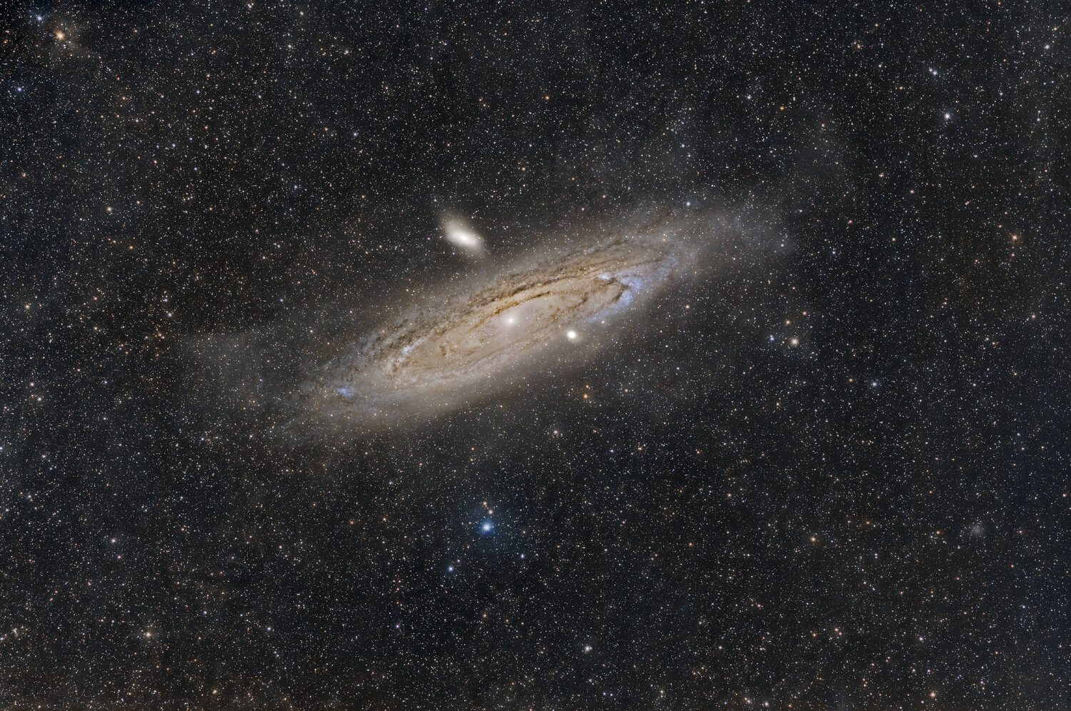 Bonjour à tous, Voici ma tentative d’un classique parmi les classiques : M31 et ses proches voisines. Ces galaxies sont difficiles à traiter du fait de la forte dynamique entre leurs cœurs et les régions périphériques plus diffuses. J’ai donc essayé de faire un HDR en utilisant pour la première fois les outils dédiés de Pixinsight : HDRComposition et HDRMultiscaleTransform. En plus des poses principales de 90 secondes, j’ai pris quelques dizaines de photos de 15s, 30s et 60s en ne sachant pas exactement lesquelles me seraient utiles par la suite. Après de nombreux essais je n’ai obtenu un résultat acceptable qu’en ne conservant que les poses de 60s pour le cœur. Le matériel : - EOS 6D (non défiltré) - Canon EF 300mm f/4 - monture Vixen gp-2 photo guider (sans autoguidage) Côté traitement : - empilement avec SIRIL - GraXpert - Pix (BlurX, noiseX, starnet, HDRComposition, HDRMultiscale) - Darktable (netteté, contraste, saturation) - Gimp Et l’image issue de l'empilement de 320 poses de 90'' + 20 poses de 60’’, tout à 1600 iso : Les critiques et les conseils sont les bienvenus !