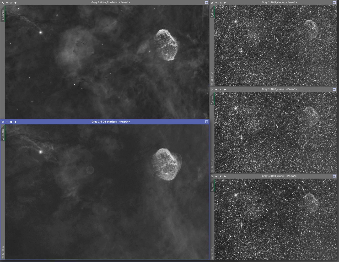 Merci pour vos remarques. Effectivement, j'ai fait un traiter sous Pix en passant par la case BlurX qui corrige bien les étoiles. Ensuite montée d'histogramme séparée de la Starless et du starmask pour que les étoiles ne mangent pas trop les nébulosités. Mais vu le temps cumulé de poses relativement faible (un peu moins de 5 min.), les nébulosités restent faibles et l'étirement de l'histogramme a été délicat. C'est noté pour essayer à F2 la prochaine fois, mais comme je fais des images sans monture de suivi, j'ai privilégié l'ouverture puisque mon temps d'exposition unitaire est limité à 6s. -