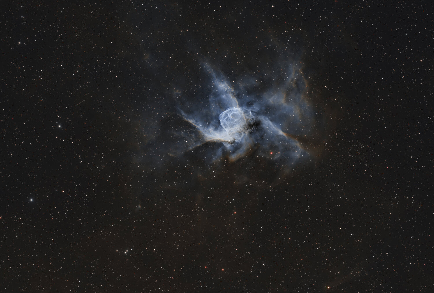 Reste la problématique de la mise au point à chaque changement de filtre surtout avec une lunette. Par contre avec un Newton et de bons filtres parafocaux, ça doit pouvoir passer sans MaP. Personnellement avec mes lunettes je préfère enchaîner les prises Ha, puis O3 et enfin S2 (ou O3 puis Ha en fonction de la nature de la cible) par série de 15 ou 20 prises mini avec un dithering toutes les 3 à 5 vues, ce qui me permet de faire la MaP à chaque changement de filtre. Par exemple sur mes prises du Casque de Thor réalisées sur 3 nuits (car accessible qu’une petite partie de la nuit), j’ai fait des séquences de 25x180s sur chacun des filtres Ha et O3 en terminant par des séquences de 20x60s en RGB (pour les étoiles), dithering toutes les 3 poses et mise au point à chaque changement de filtre. -