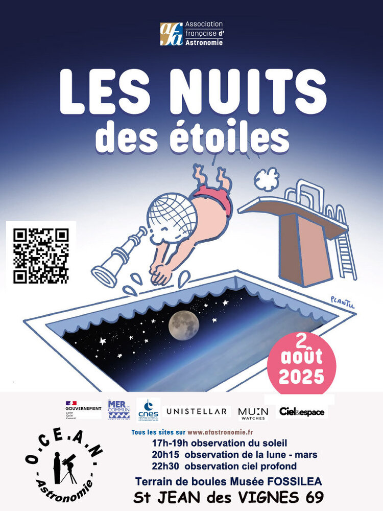 C'est avec plaisir que nous vous invitons à notre nuit des étoiles le 2 Août 2025 Plus d'informations : https://club-astronomie--chazay-ocean.fr/guy/Agenda.htm -