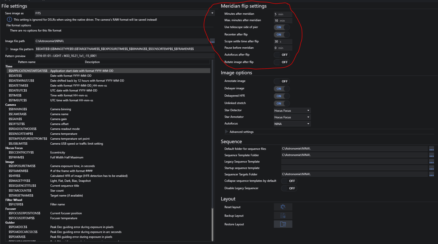 21. Par contre, question c*n, j'arrete pas de lire des références aux "automatic Meridian Flip settings" sous Options/imaging, sauf que moi, j'ai juste les paramètre "Meridian Flip", pas automatic? Versus: une idée? a+ Serge