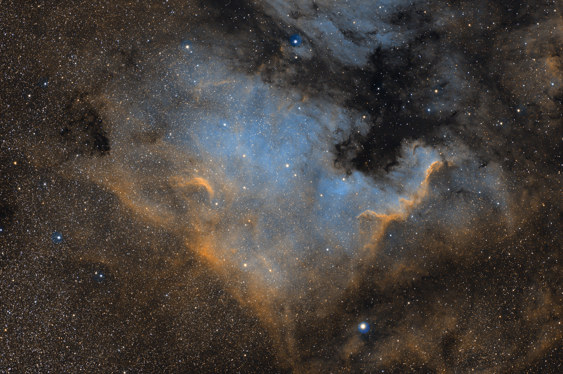 17. Bonjour, J'ai un peu galéré pour le traitement de cette nébuleuse. Donc NGC 7000 réalisée avec une ASKAR FRA 500 et une ASI 6200, 1h 30 pour chaque couche avec poses unitaires de 120 s , monture GEM 28 EC sans autoguidage. J'aurais aimé avoir plus de poses mais le temps mitigé de cette année...