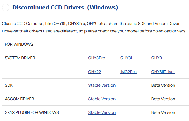 Driver Ascom ou autres pour une QHYCCD 8 L