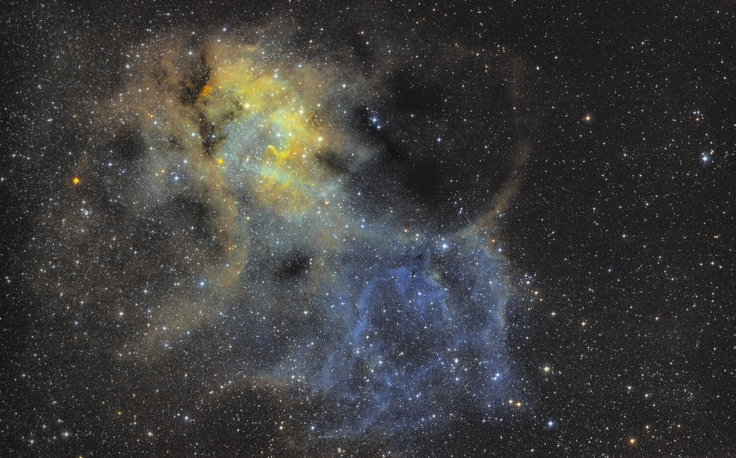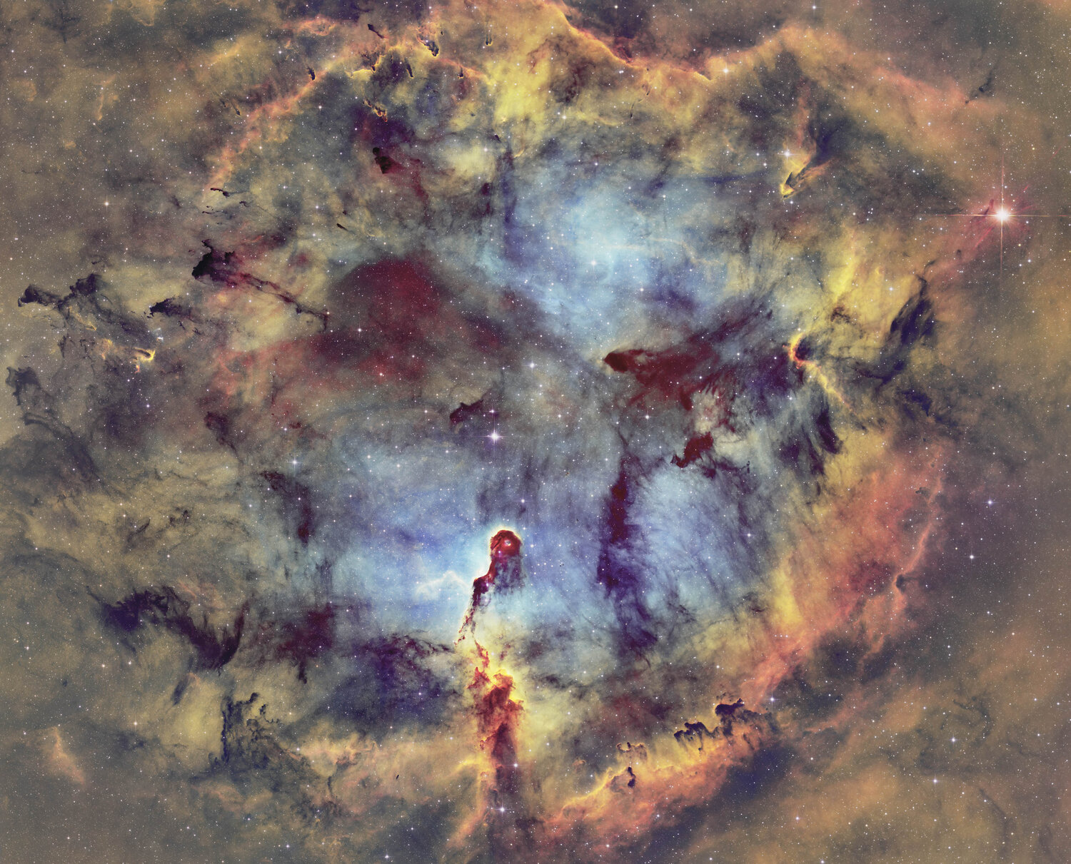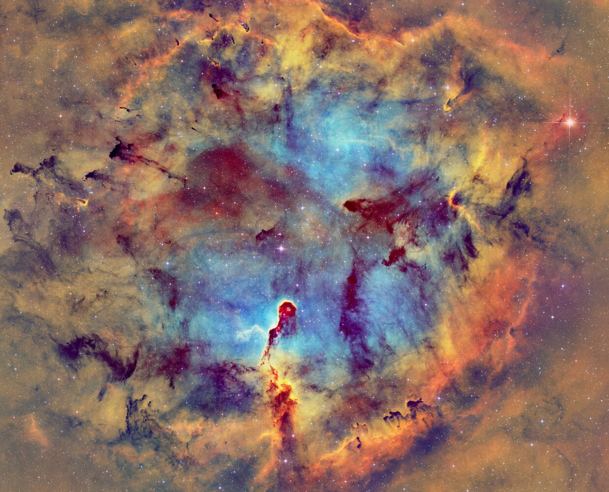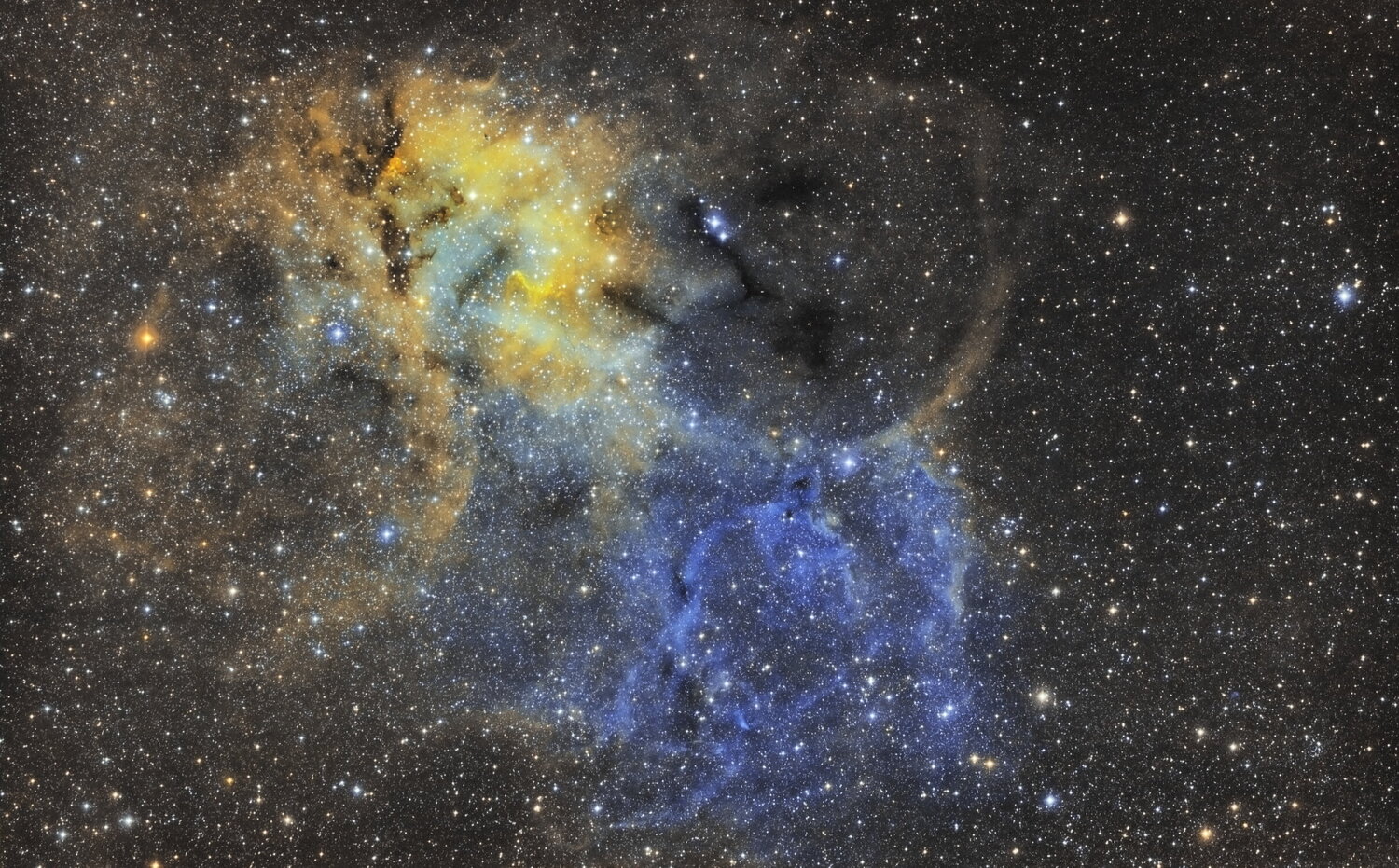Après un petit break d'un ans, je me suis remis à l'astrophoto avec un beau défi. La nébuleuse du lion en SHO et à l'APN.
