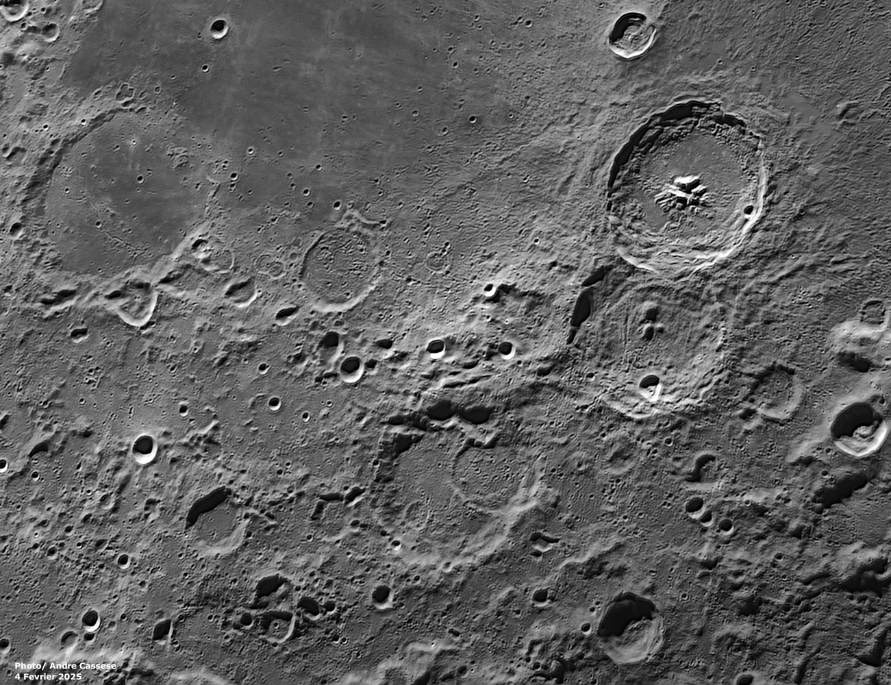 le trio de cratères Theophilus, Cyrillus et Catharina en haute resolution avec le telescope Mewlon 250 S - barlow 1.6 x et camera player one -