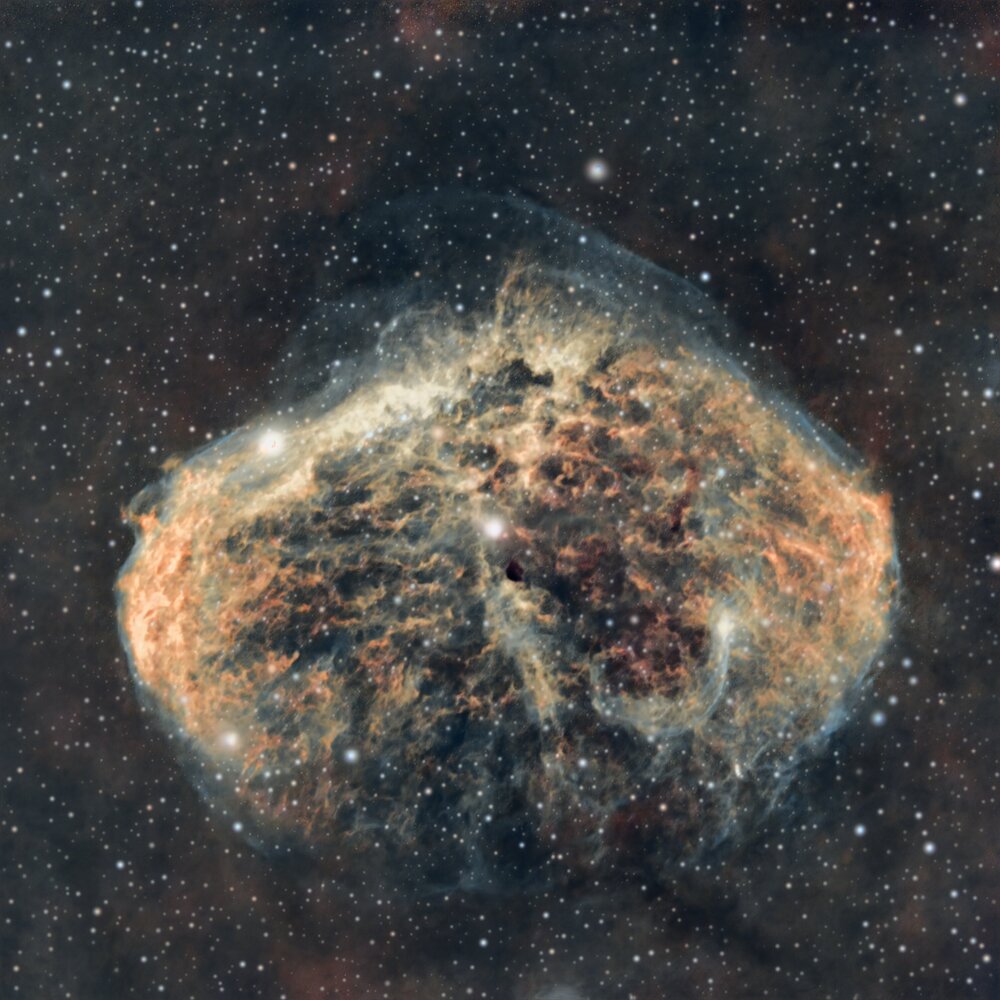 Voilà un moment que ça mijotait.... Des poses fin août, des vacances (Irlande, j'aimerais pas trop être astram là-bas), des travaux de peinture, et j'en passe. Et puis j'ai un peu galéré pour le traitement car je me suis imposé un traitement HDR. Or comme je travaille avec Siril, j'ai dû cherché un soft qui fait le job et j'ai pris PhotoMatix. Payant, mais je n'ai pas trouvé d'alternative qui soit mentionnée sur un forum ou un autre. Dans le détail du traitement ça donne: C11 Fastar classique avec réducteur, 1700 mm de focale, ASIAIR mini, ASI533MC, EAF. Filtre Antlia Tri-band Prises les 21 et 22 août 2024, avec pas mal de déchets, j'ai tendance à rejeter les brutes avec des étoiles pas trop rondes Toutes les brutes retenues ont au préalable été alignées entre elles 36x15" (9') - GraxpertDenoise, étirement classique de l'histogramme, puis un coup de GHS pour tirer le peu qui ressortait autour de l'étoile centrale 112x30" (56') - idem 62x60" (62') - idem, pas de GHS c'est assez lumineux 25x180" (75') - pareil 42x240" (180') - pareil Total 6h22. J'ai peut-être été un peu ambitieux avec les multiples durées, ça complique quand même le bazar... Puis PhotoMatix, nouveau passage sur Graxpert et son Denoise, Starnet++, pas d'étirement de l'histogramme juste GIMP pour la netteté, la saturation et le contraste. Retour sur Siril, recombinaison des étoiles, un passage de CLAHE (contraste), très léger étirement arcsinh pour redonner du peps, re-Denoise et une légère réduction d'étoiles. Ouf... Comme les étoiles étaient un peu allongées malgré tout, j'ai utilisé la fonction d'étoiles synthétique de Siril. C'est bien mais ça les fait grossir, d'où la réduction d'étoiles. Voilà... un peu long, désolé. Mais ça me fait un aide-mémoire pour les fois prochaines ! Commentaires et conseils bienvenus évidemment, et en particulier pour le traitement HDR. -