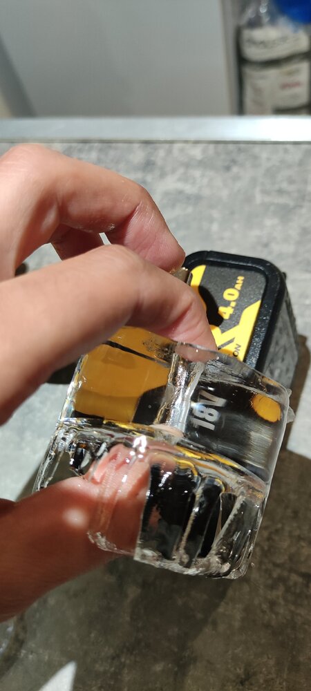 Bonsoir, Il y a environ 30h j'ai mis 2 petites quantités d'eau au congélo. Une eco-cup et un thermos en plastique mais qui marche bien. Les résultats sont là. Le thermos a ralenti la congélation de façon significative donnant une magnifique clarté comparé à l'eco-cup . J'ai pas attendu assez longtemps car le bas était encore liquide même après 30h :o. Bien isolé ce thermos ! Dans le 2 j'ai mis de l'eau froide du robinet tout bêtement... La différence est simplement le récipient pour autant que je sache. Faites pas attention au trou dans le bloc... J'ai utilisé une perceuse pour avoir un point au centre et tirer sur la glace car elle était bien bloquée... Et l'astuce de faire couler de l'eau sur les parois ne marche pas avec le thermos. Je me doutais pas que le bloc était encore partiellement liquide et j'y suis allé trop fort avec la perceuse : j'ai fait une marque au fond du thermos... Je vais planquer le thermos et le réserver à ce genre d'usage en espérant que ma femme ne se rende pas compte qu'il a disparu !