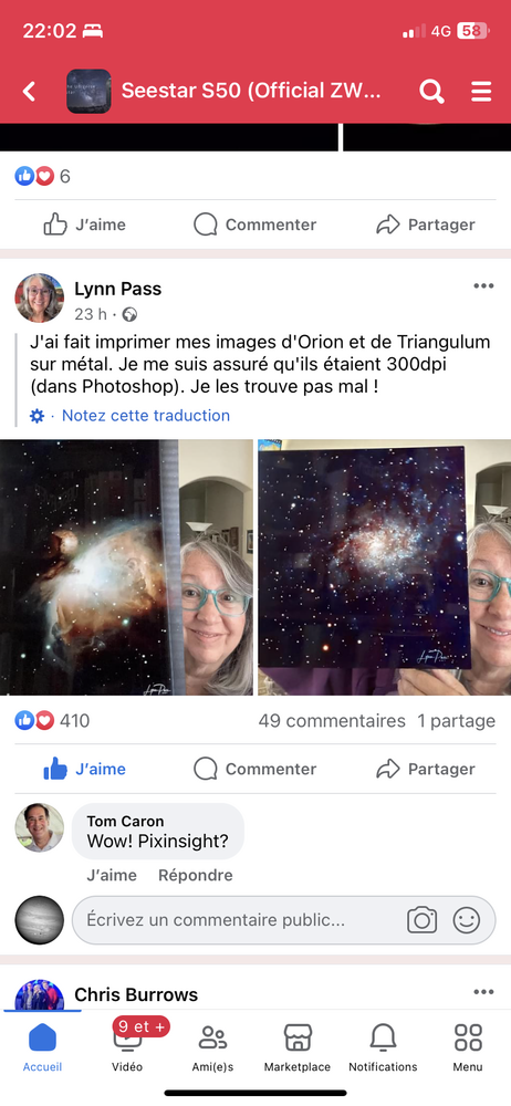 je regarde et commente les post fb du seestar et c’est bluffant pour le budget