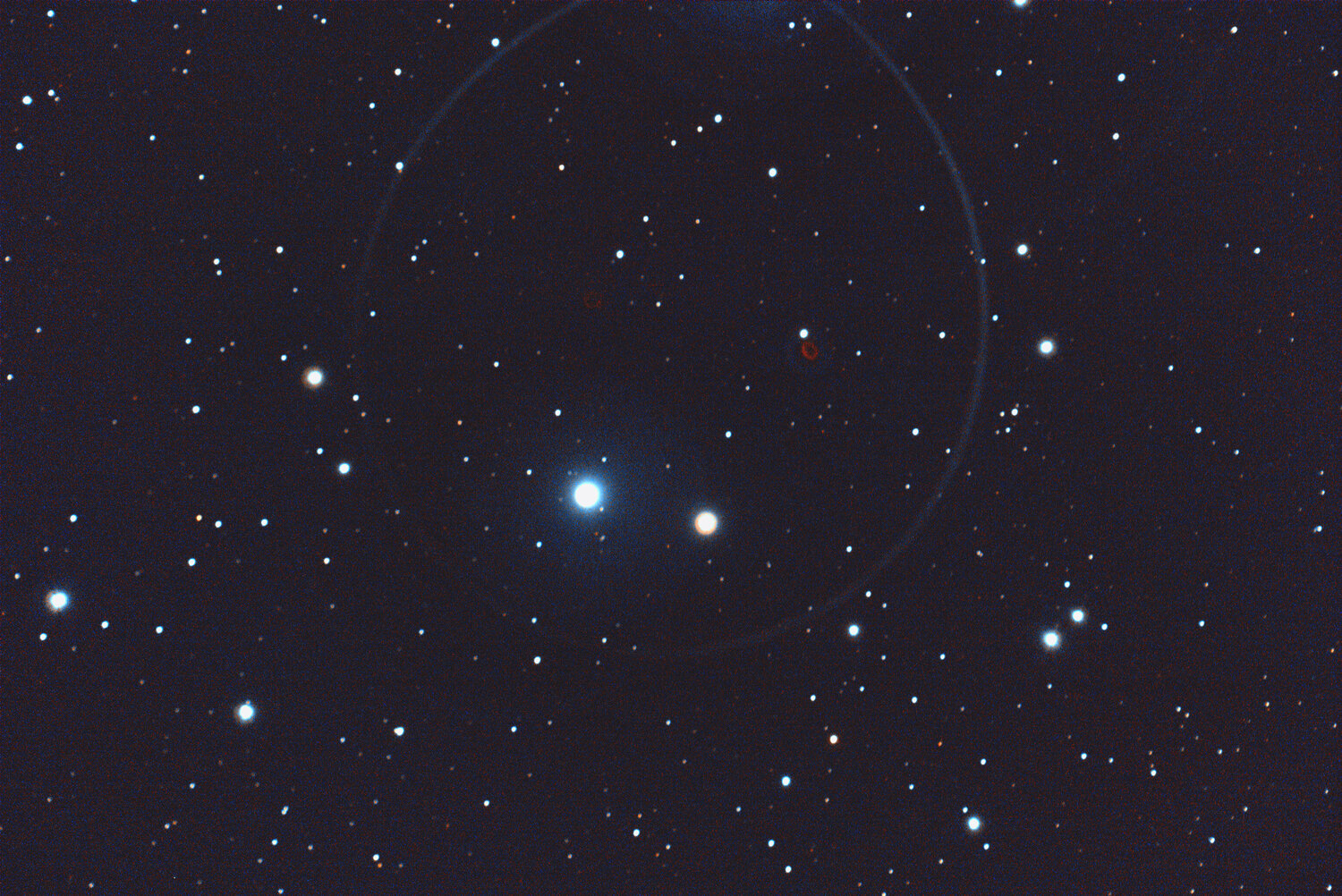 Bonjour, Je pense avoir trouvé ce qui provoque cette anomalie, mais je n'ai pas encore pu refaire de test. J'ai revérifié tout le montage et je me suis apercu, que j'avais vissé le réducteur Starizona à l'envers dans la chaine optique comme un débutant! Pourtant je change souvent le montage entre le C9 et la lunette. Donc j'avais (réducteur inséré dans mon PO) j'étais coté filetage T2 au lieu du coté filetage M48, je crois que mon souci vient de la. Mon allonge T2 variable, à un filetage extérieur en M48 et intérieur en T2, et je sais bien que coté caméra il faut être en T2 mais j'ai inversé le montage du RF. J'ai rectifié et remis le backfocus comme il doit être avec le RF à 90,3mm. Des que je peux refaire un essai je vous tiens informé du résultat Encore merci pour votre aide Bon ciel Bonjour à Tous, Après avoir remis mon RF dans le bon sens, j'ai pu enfin refaire un test après plus d'un mois de mauvais temps! Je poste cette photo issu du C9 (6.3) avec la 2600mc, il y a seulement 30 poses de 120 secondes réalisées avec AsiStudio, une température extérieure de -2. CCD refroidie à -15 je n'ai pas fait de dark pour ce test. Après empilement je constate des donuts rouges. Savez vous ce qui provoque cela merci -