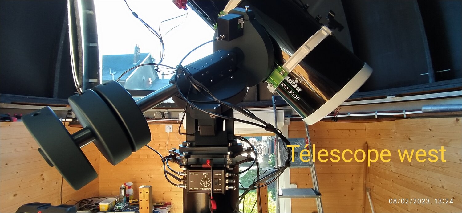 @Discret68, merci pour tes commentaires. Concernant le changement de train optique, le problème est que lorsque tu enlèves celui-ci en cours d'observation, le déséquilibrage se produit, le télescope bascule immédiatement en entrainant les moteurs ( ou si le galet n'est pas assez serré, il y a glissement). Bref tu te retrouves avec la main gauche qui tient le télescope et la main droite qui tient le train optique et là, tu t'imagines la suite!! La solution est de le mettre dans une position de blocage et d'arrêter le suivi.... mais tu perds ta cible. Tu a fais une très belle réalisation avec ton contrepoids coulissant. Quel avantage de pouvoir faire tout ça de ces propres mains ! Pour les encodeurs, je ne désespère pas. Il fonctionneront un jour en boucle fermée. Le seul problème est de savoir...quand! Pour la MES, quand le temps le permettra, je vérifierai. Onstep propose aussi un alignement sur 3 ou 6 étoiles que je dois aussi vérifier. Quoi qu'il en soit, je sais bien que ma monture ne rivalisera jamais avec une GM2000.🤔, mais elle me suffit amplement 😉