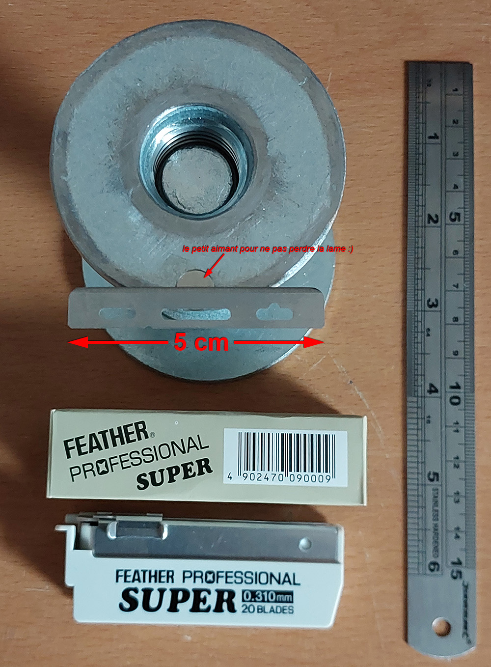 Bonjour les amis, J'ai reçu les lames Feather super professional hier soir (commandées sur un site appartement un à gars très riche qui envoi aussi des gens dans le proche espace) : eh bien ça coupe ! super bien (essai fait avec une feuille canson 180 gr format A4 dans le sens 29.7 cm; ça la tranchée d'un coup comme si la feuille n'existait pas). Un peu cher je trouve (23 euros) mais bon, il y en a 20. Ya de quoi faire. Il me manque du temps pour faire un véritable essai sur je ne sais pas encore quoi (peut être une branche de céleri) puis de voir ce que je peux avoir comme épaisseur de coupe mini et de voir ça au microscope . . . Amicalement, FRanck