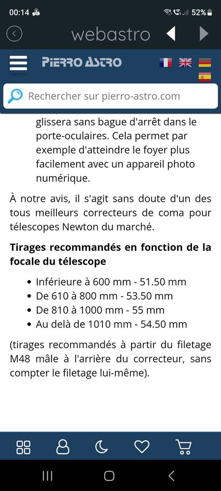 Hello!... Je reviens suite à la forme bizarre de mes étoiles, attribuée dans un premier temps à la collim !... Ma collim étant nettement meilleure (Ocal plus collim étoile), mais la forme de mes étoiles est toujours bizarre !? ⭐🤔... J'ai trouvé chez Pierrot Astro cet article qui précise que le backfocus doit tenir compte de la focale par rapport au correcteur de coma !... Du coup, comme je possède le même correcteur, et que j'ai un 200/800, mon backfocus devrait être de 53.5 et pas de 55 (préconisé par le fabricant de ma 294 MC pro)... Que pensez vous de cet article ?... Faut il rester à 55 ou mettre 53.5?...merci -