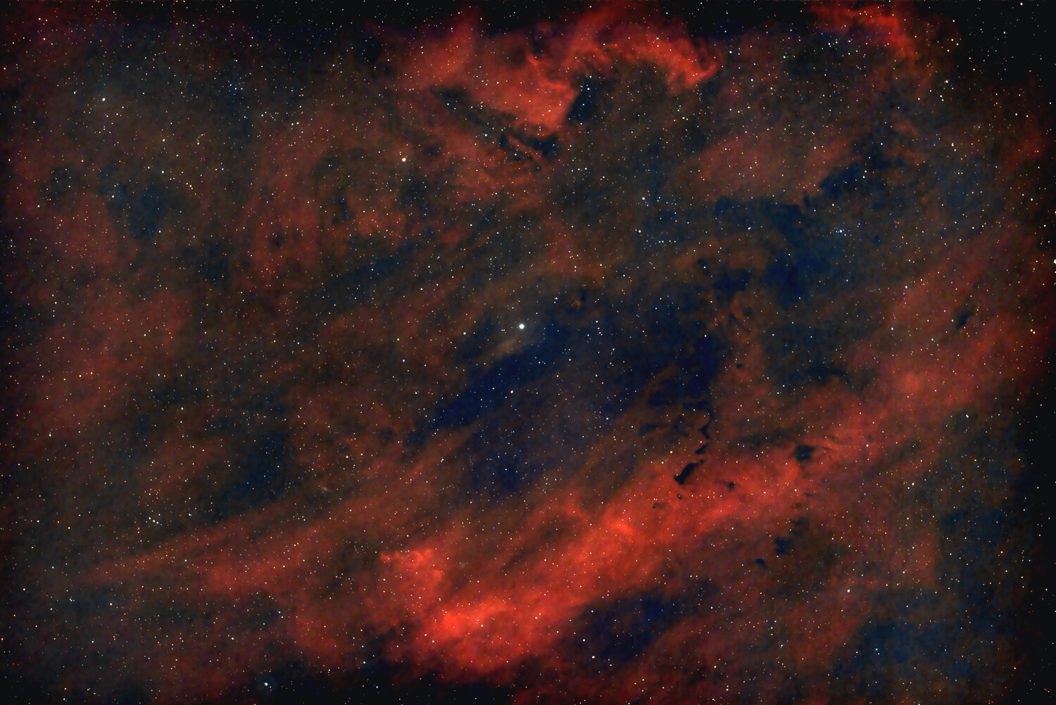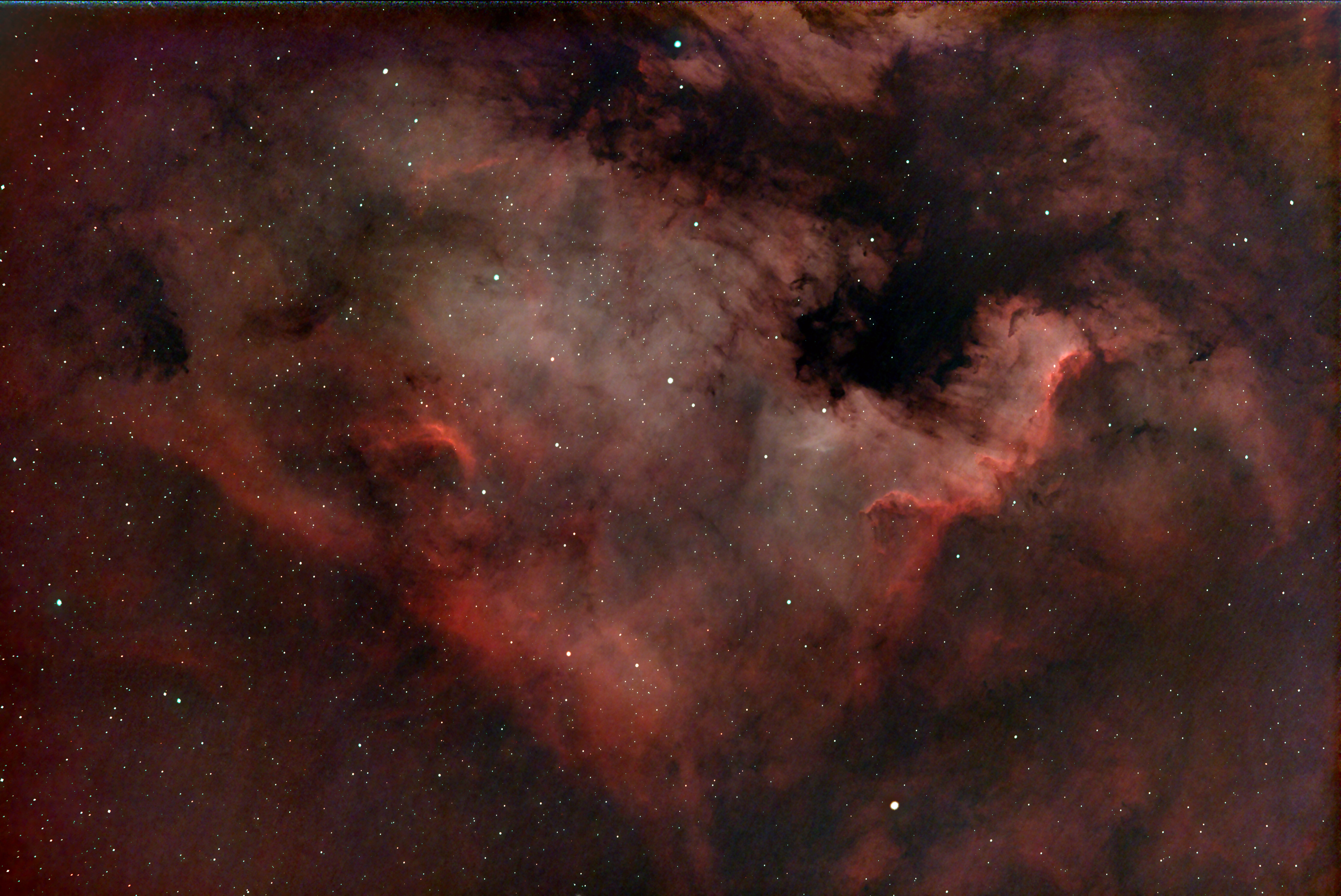 ,NGC 7000 aussi appelé la nébuleuse de l'Amérique du Nord est une nébuleuse en émission située dans la constellation du Cygne capturée avec 1 lunette de 60mm ,asiairplus ,asi2600 35 brutes ,traitement siril et astrosurface ,jonglée a travers les nuages de 20h a 23h