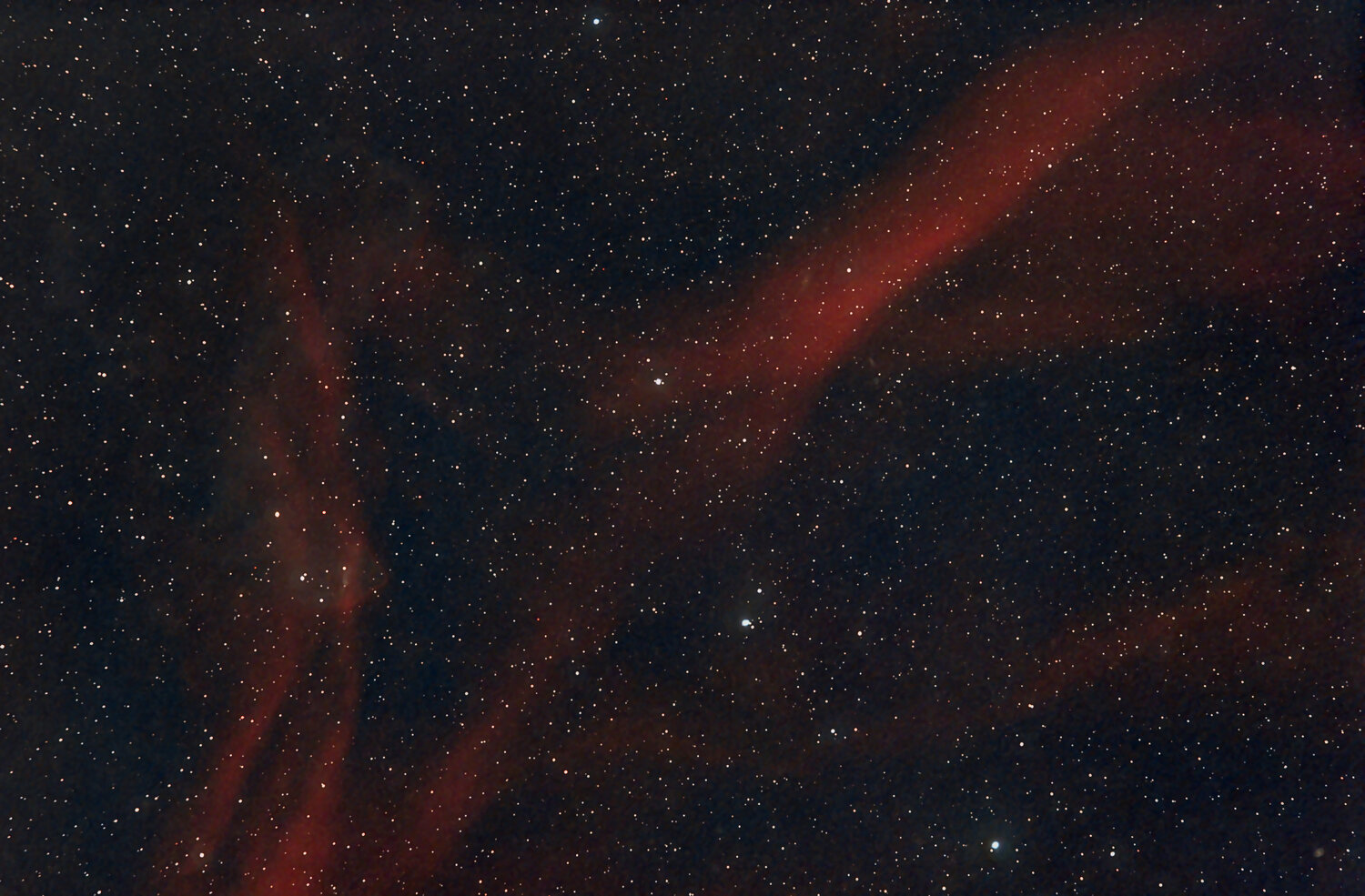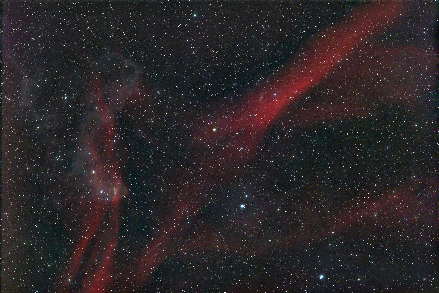 voici NGC1499 apres 43 brutes de 5mn ,avec lunette 60mm ,asiairplus et asi2600 ,filtres HA OIII,je ne possede pas de filtre uniquement HA dommage pour cette fois ,traitement siril automatique et astrosurface