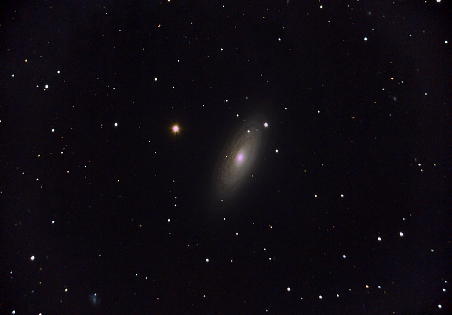 revoici ngc2683 deja vue fin fevrier,je viens de doubler les brutes ,donc le resultat de 100 brutes de 300s avec toujours l'asi 2600,asiairplus sur lx90"8 traitement siril et astrosurface , un peu deçu par le coeur rose et les etoiles un peu grosses ,mais la asi2600 me donne ça, pas le choix