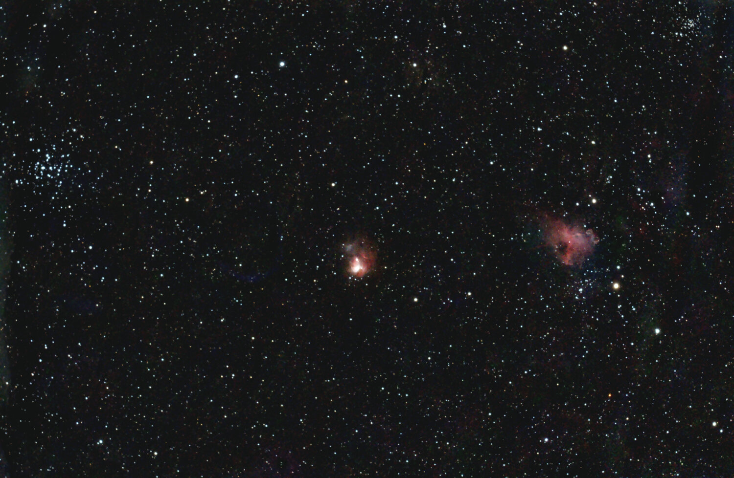 Voici NGC1931 ,NGC1960,NGC1907,IC417,avec 50brutes de 300s capture avec lunette102mm,asi 2600 asiairplus ,traitement siril et astrosurface ,quelques ombres de la lune tres proche